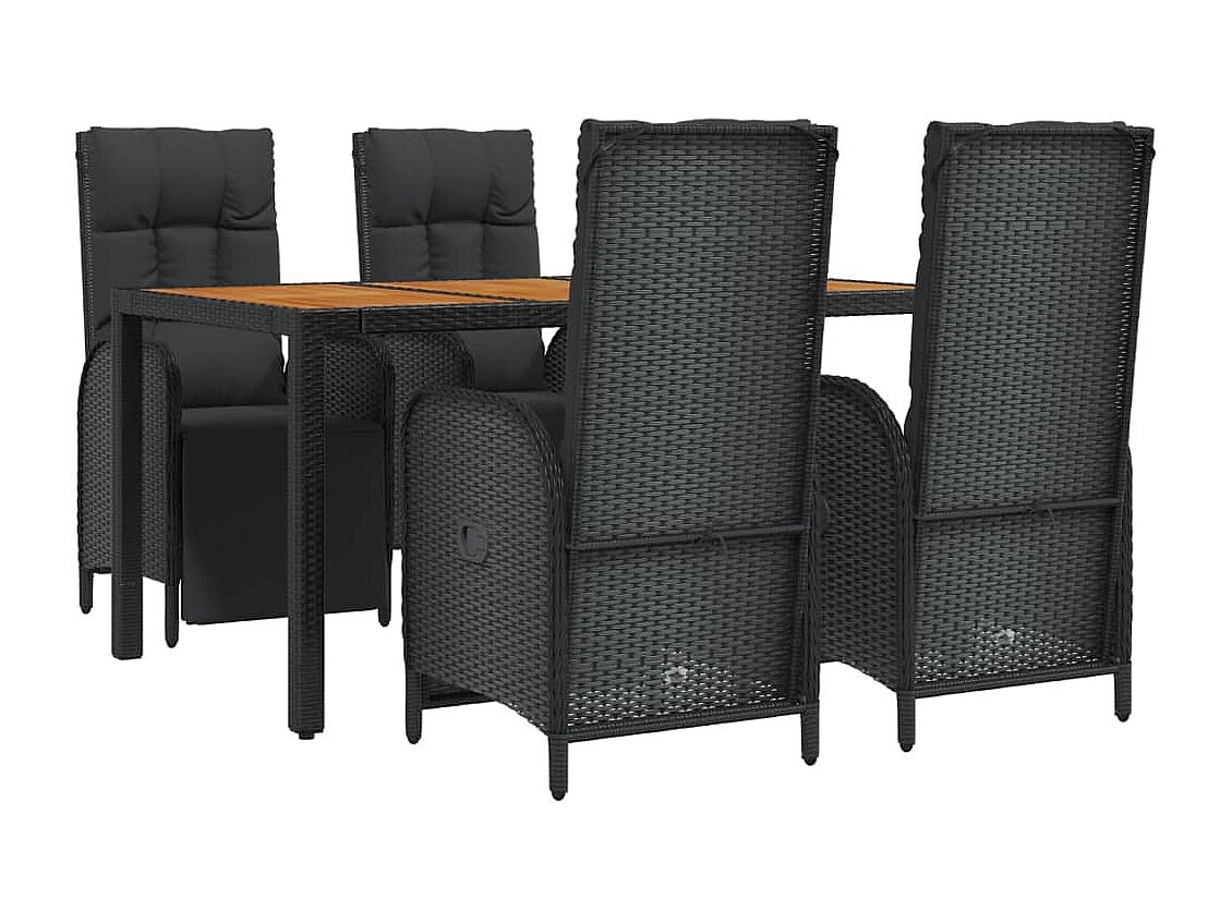 Arvild 5-delige Tuinset met kussens poly rattan zwart