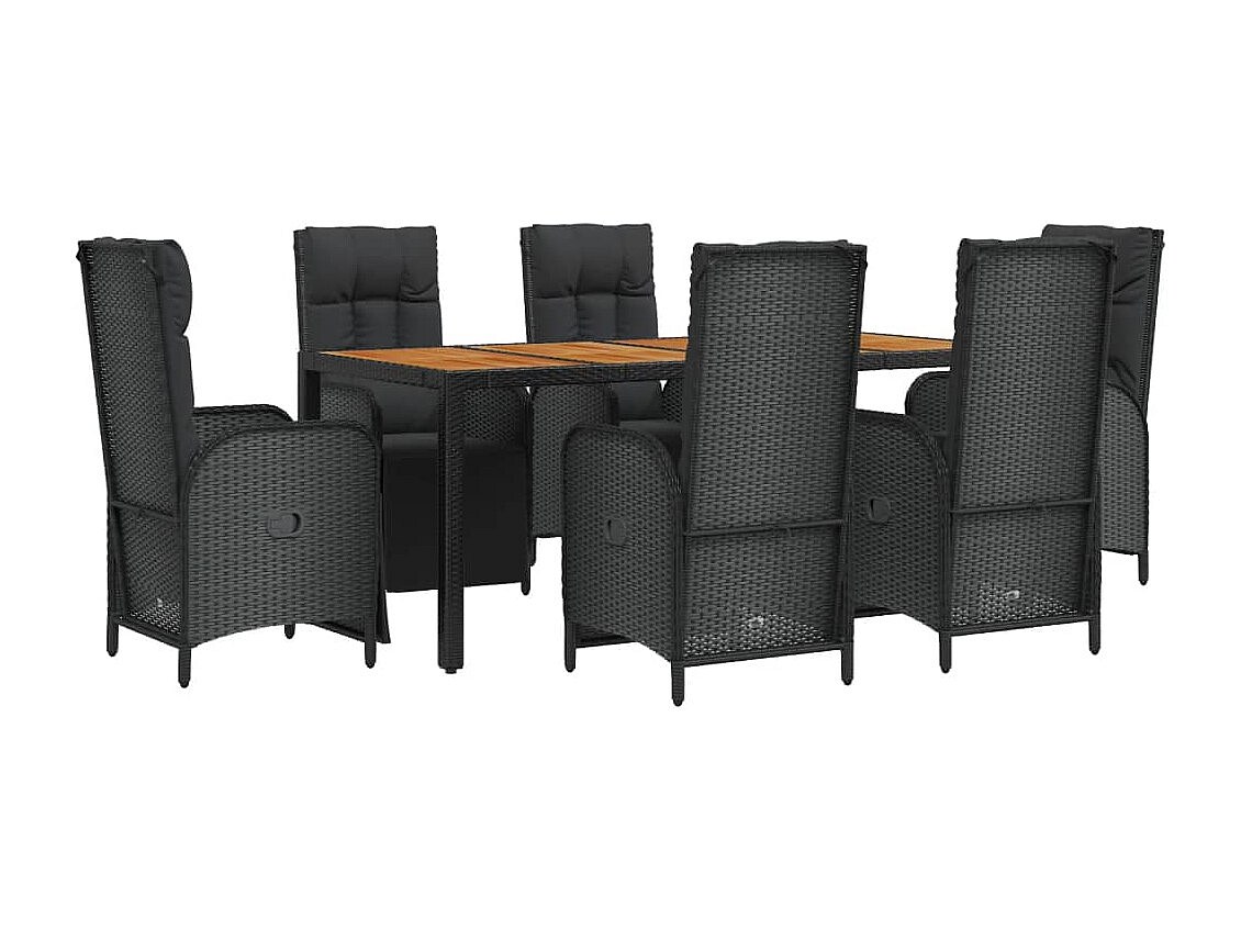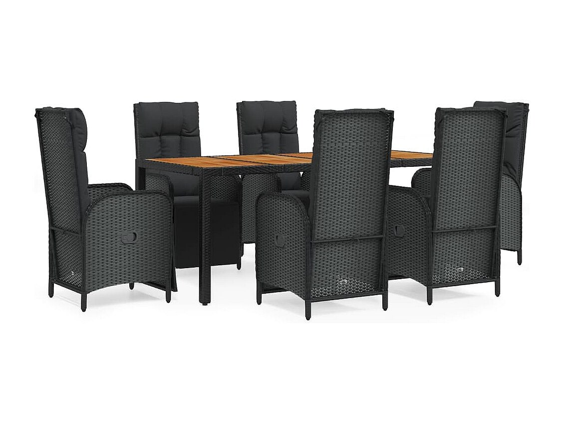 Arvild 7-delige Tuinset met kussens poly rattan zwart