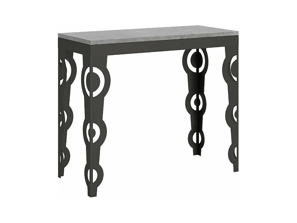 Uitschuifbaar consoleontwerp in hout en antraciet staal Kiza-Kleur Cementgrijs-Steun 4 voet-Verlengsnoeren 5 uitbreidingen