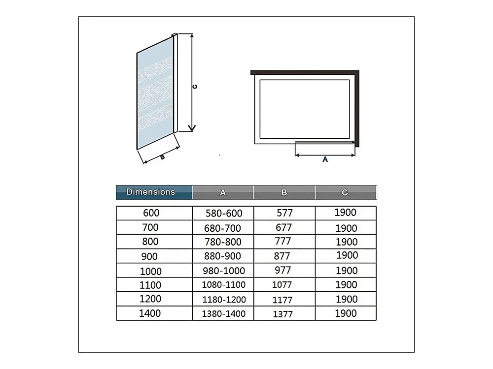 AICA inloopdouchewand 80x190cm, 6mm antikalk glas met horizontale zeefdrukbanden, uitschuifbare bevestigingsstang 70-120cm