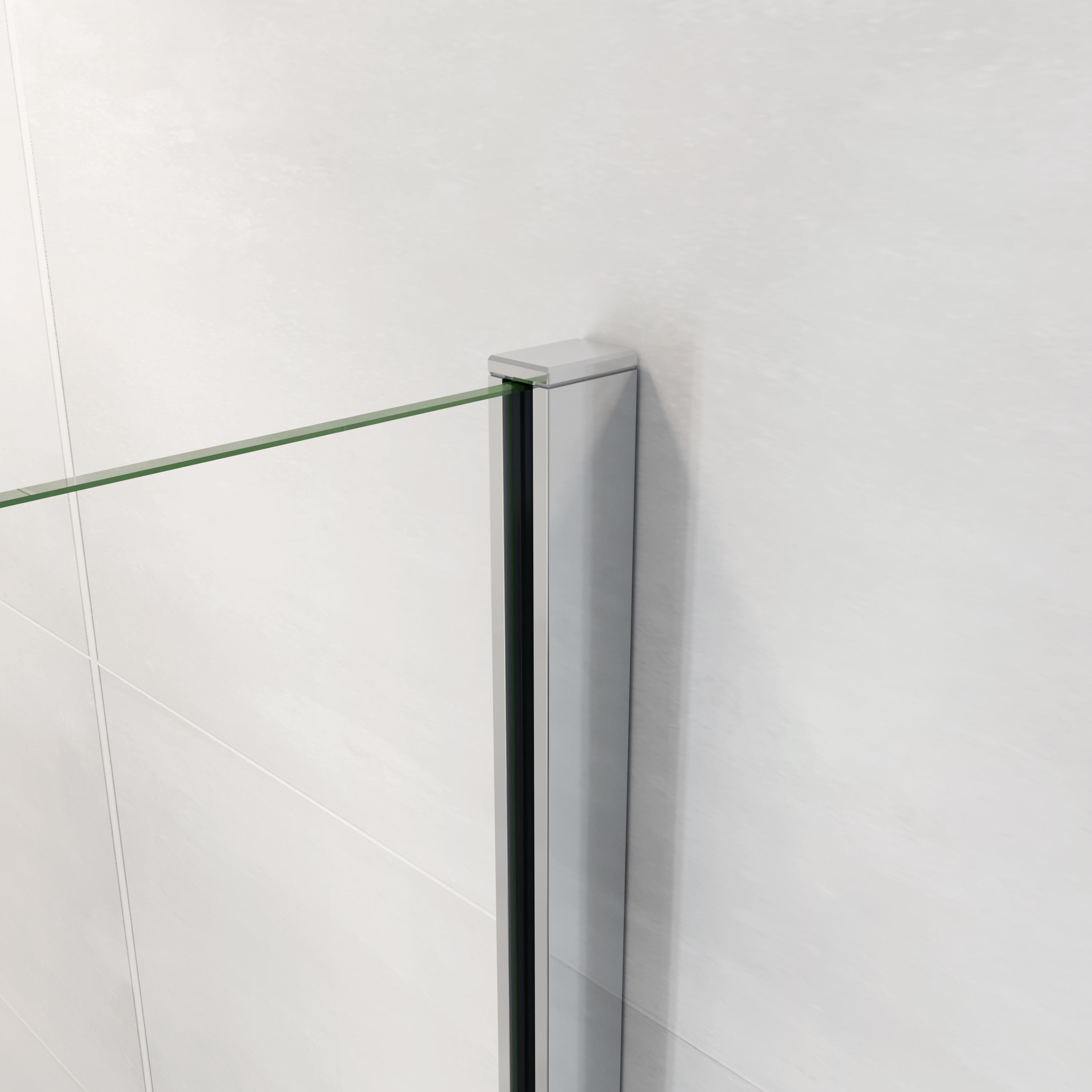 AICA inloopdouchewand chroom 70x190cm, 6mm antikalk glas met horizontale zeefdrukbanden, 90cm vierkante bevestigingsstang