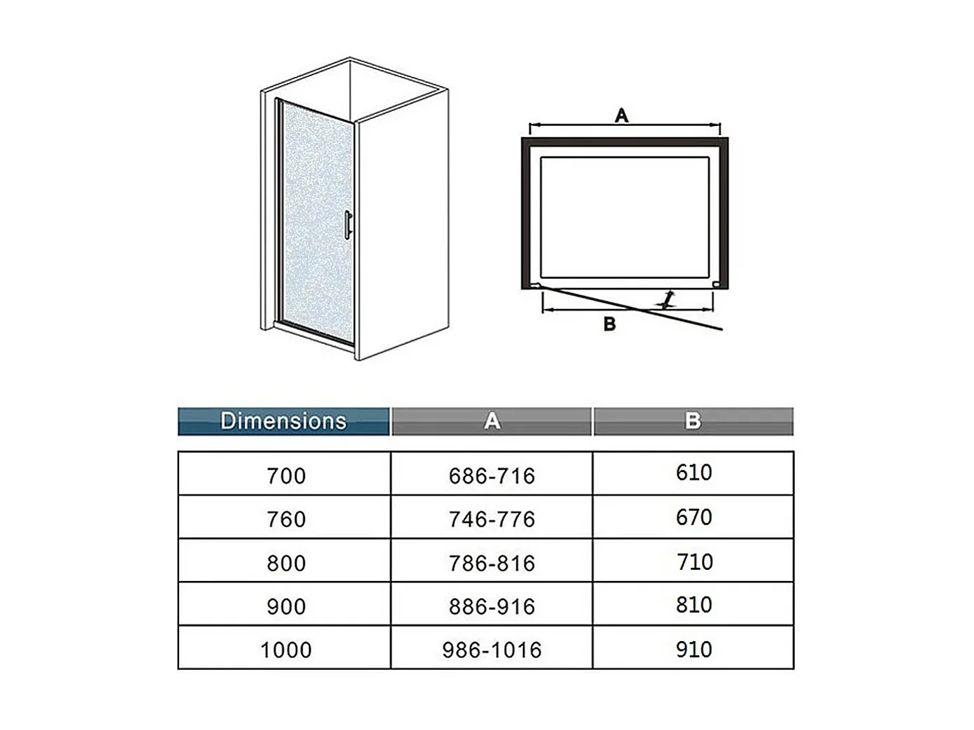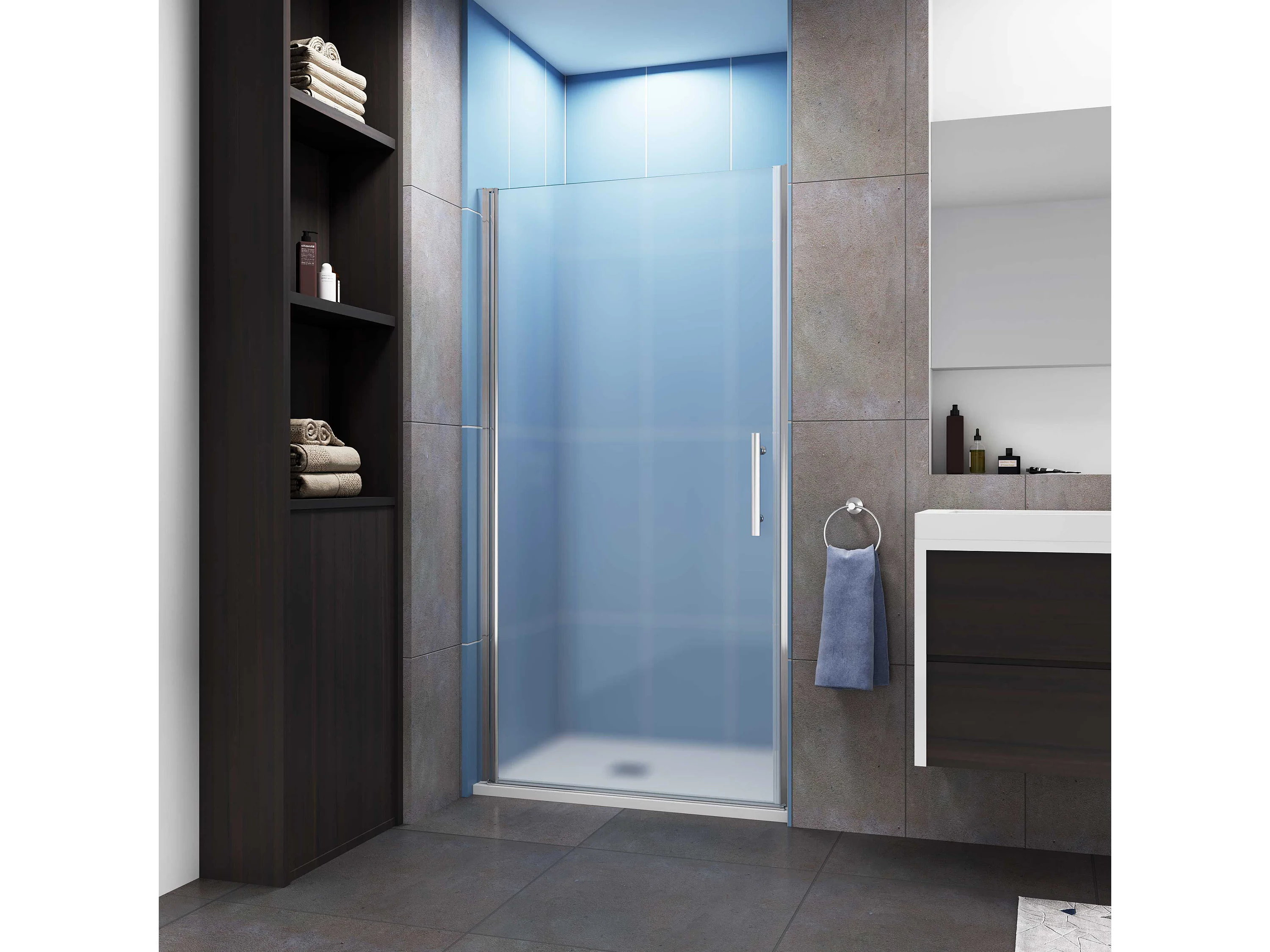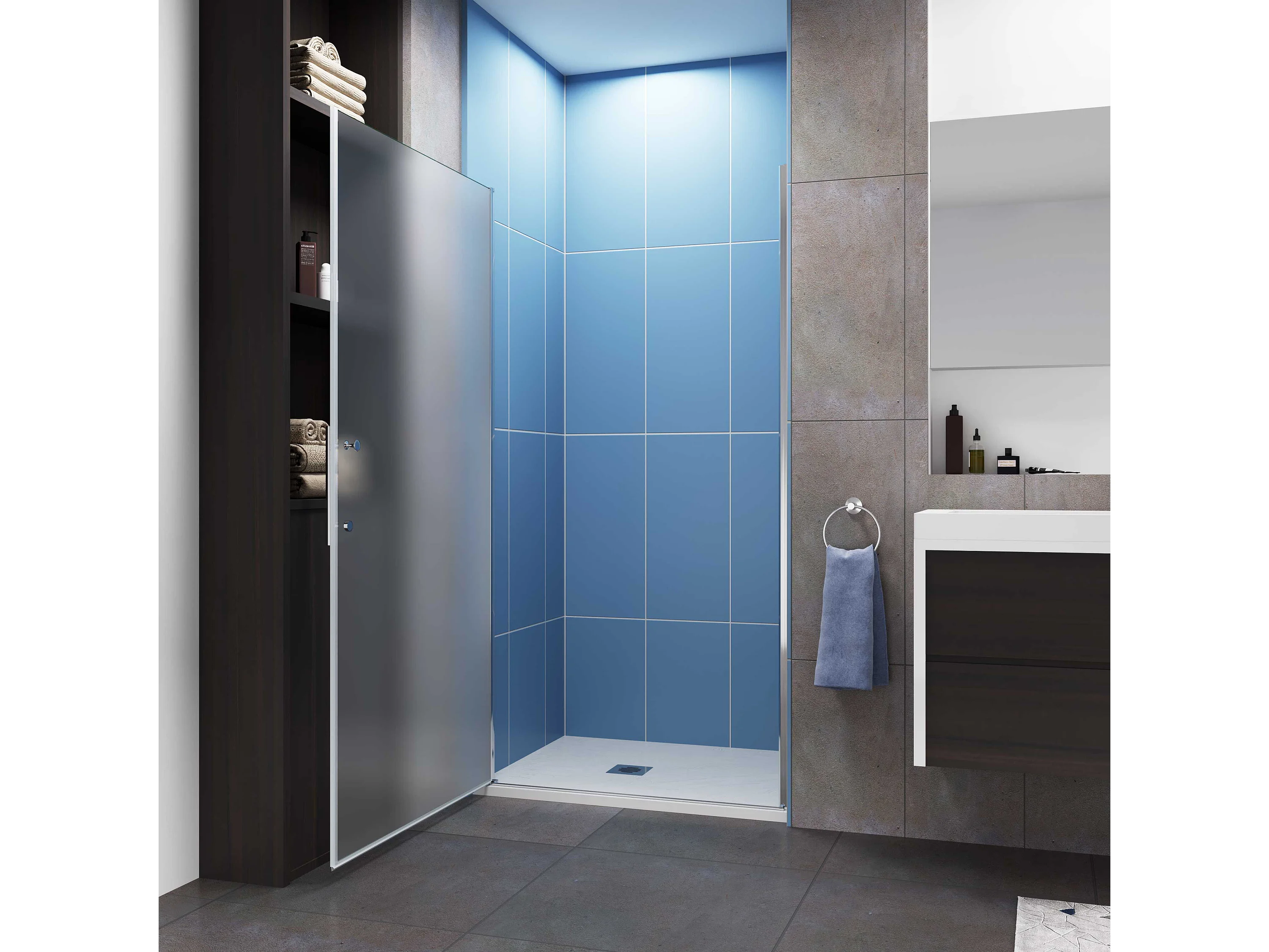 Aica verchroomde draaibare douchedeur in 6 mm matglas – L100xH185cm – Modern ontwerp, gemakkelijk te openen en gegarandeerde privacy, nisinstallatie