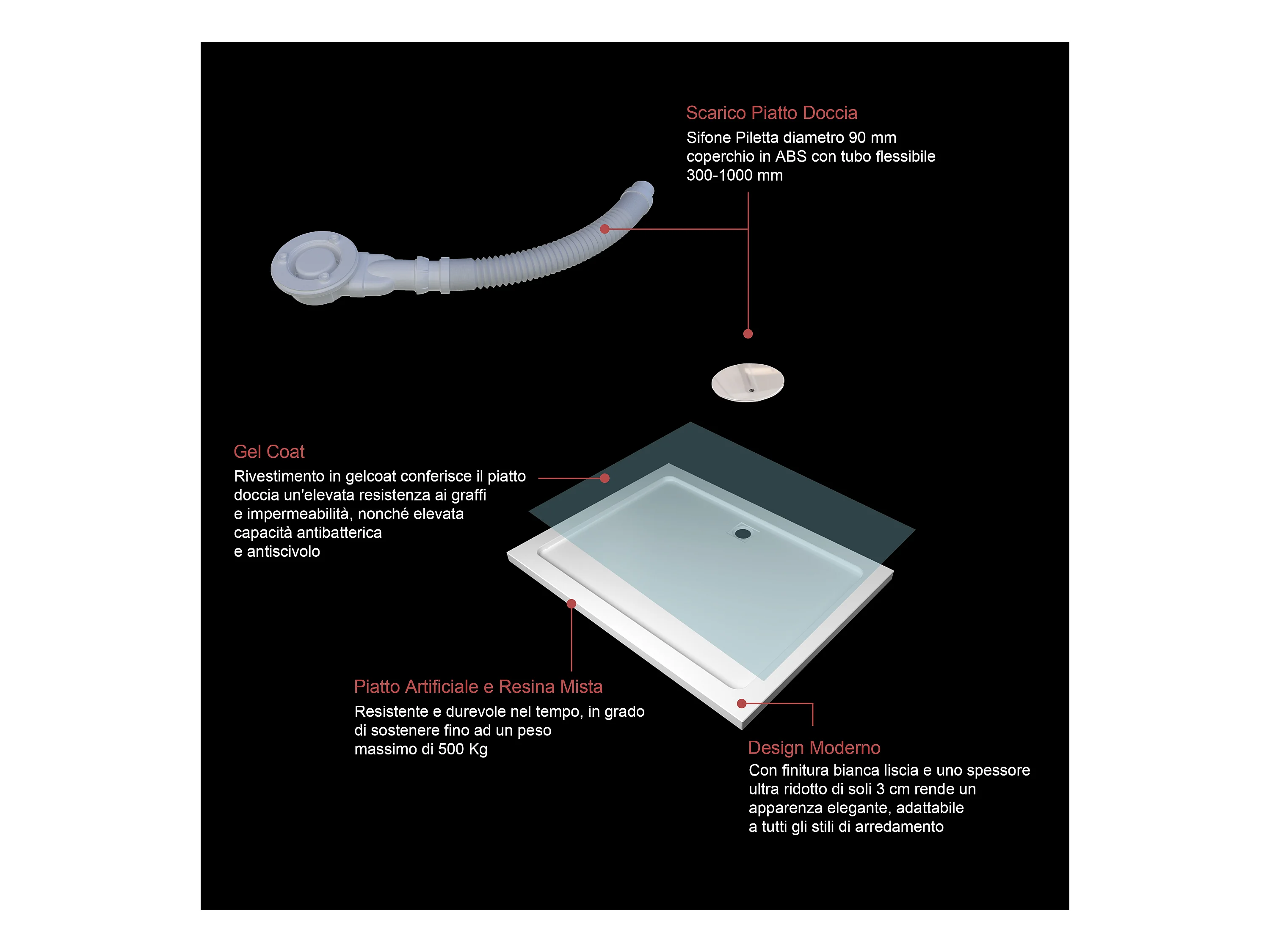 Aica vierkante douchebak Wit 80x80x3cm, douchebak Met afvoer Ultradun design, in mineraal marmer en gemengde hars, Klassiek model
