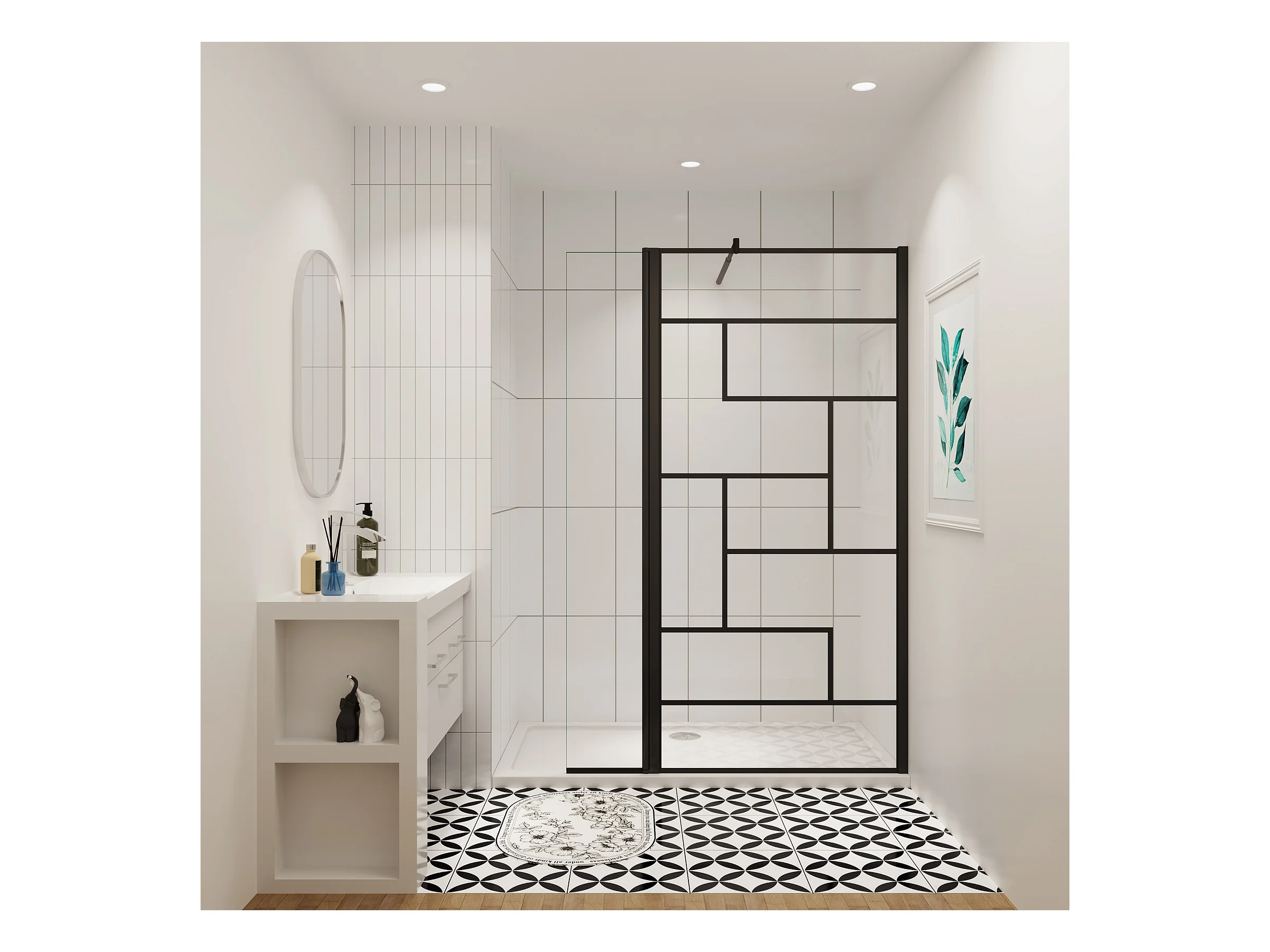 Vaste inloopdouchewand 140+40x200cm met draaibare retour - Zwart - met 140cm bevestigingsstang die op maat kan worden gesneden
