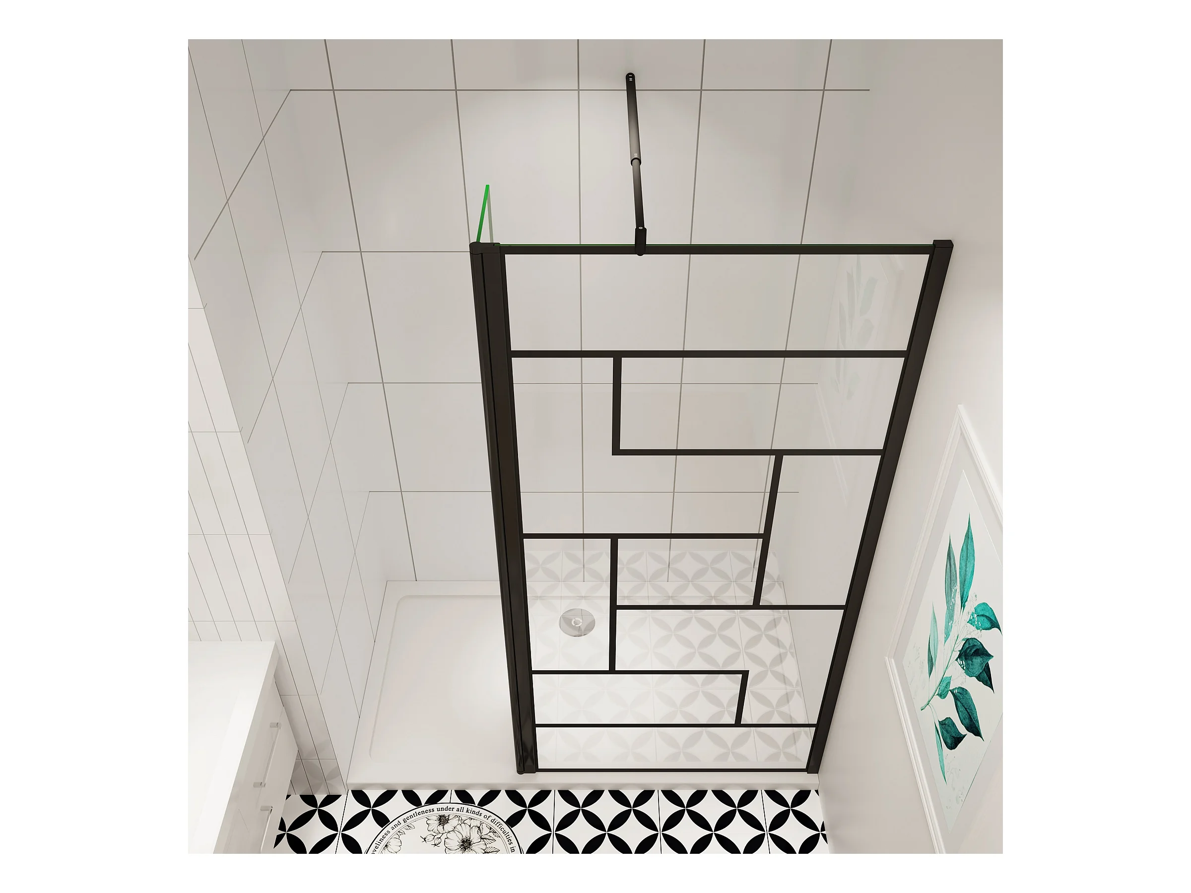 AICA zwarte industriële douchewand 140x200cm met een 30cm draaipunt retour geleverd met een 90cm stabilisatiestang