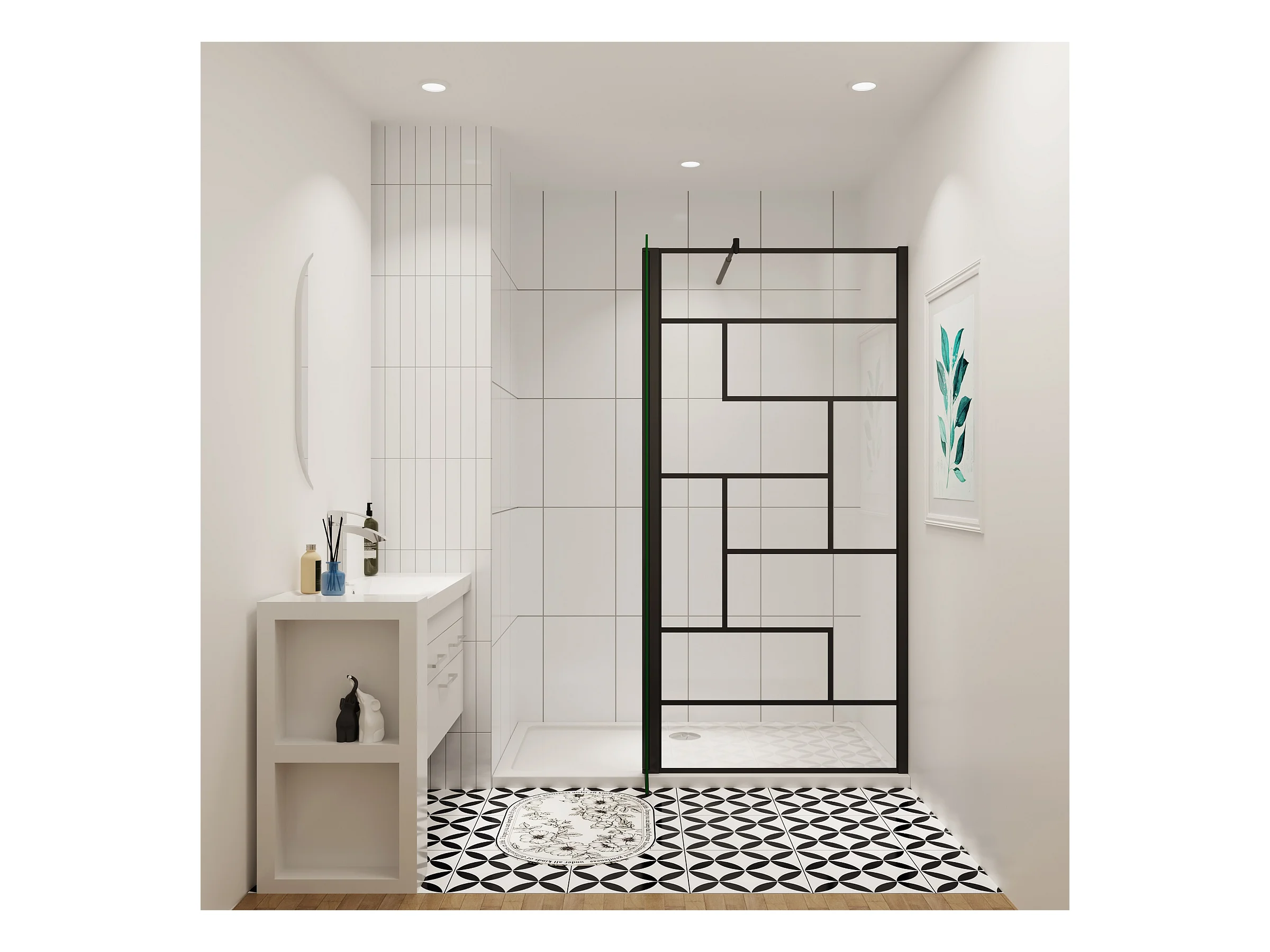 Vaste inloopdouchewand 80+30x200cm met draaibare retour - Zwart - met vierkante bevestigingsstang van 90 cm