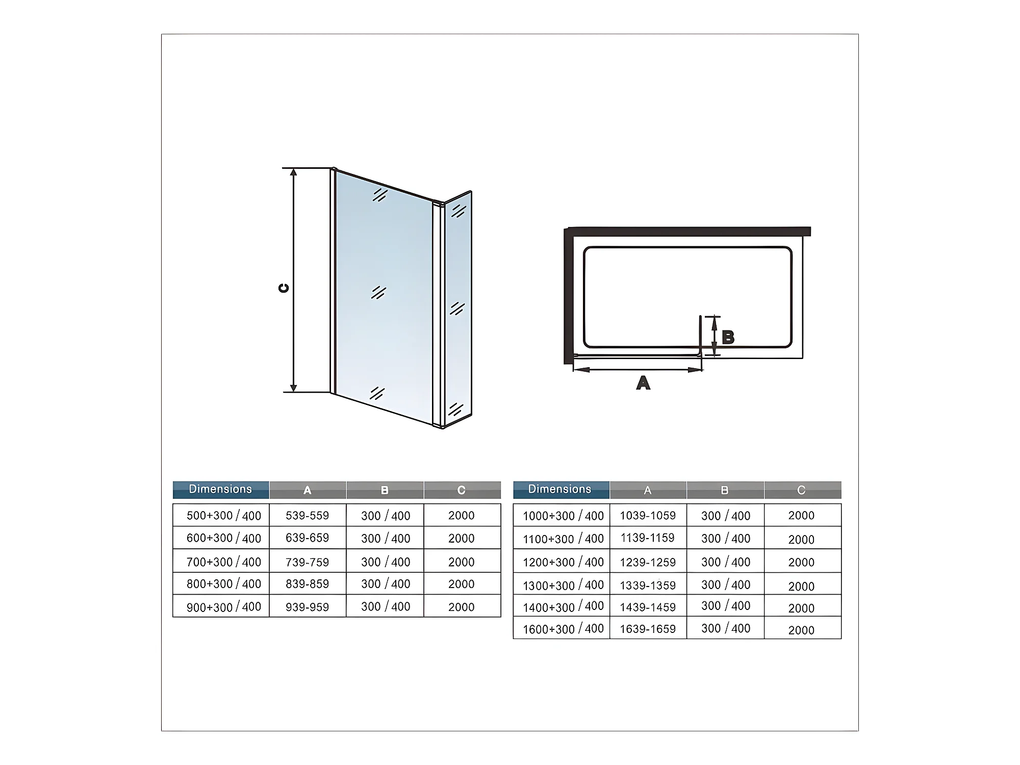Set van twee douchewandpanelen inclusief profielen - 2 x L90 x H210 cm