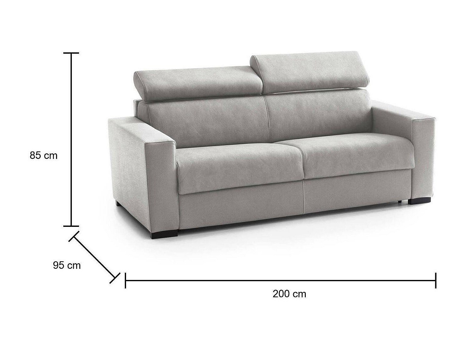 Aisha Slaapbank, 3-zitsbank, 100% Made in Italy, Woonkamerbank met draaibare opening, met verstelbare hoofdsteunen en slanke armleuningen, 200x95h85 cm, Grijs