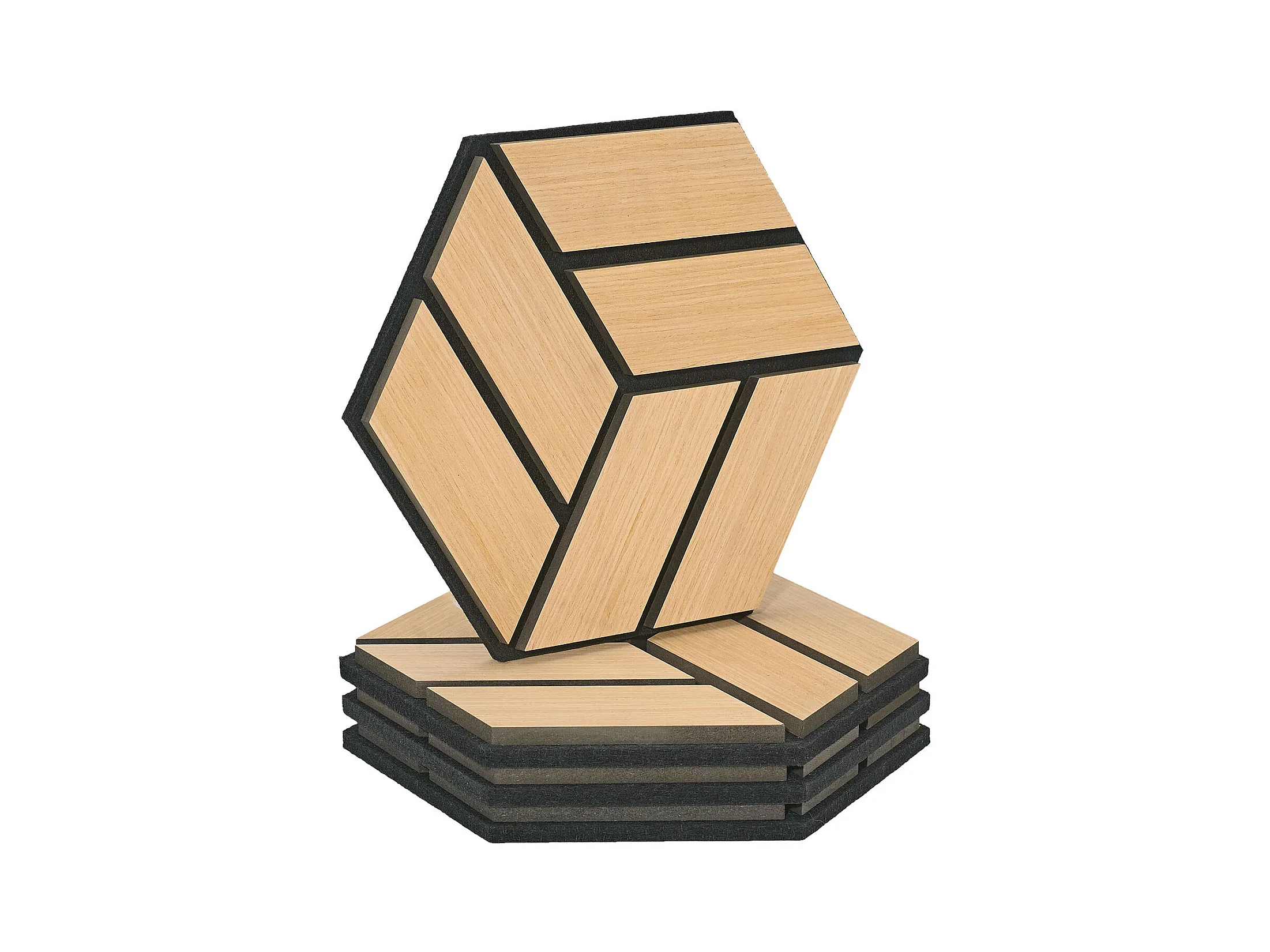 Akoestische panelen 30x26 cm Eiken Zeshoek Honingraat 4-delige set 3D