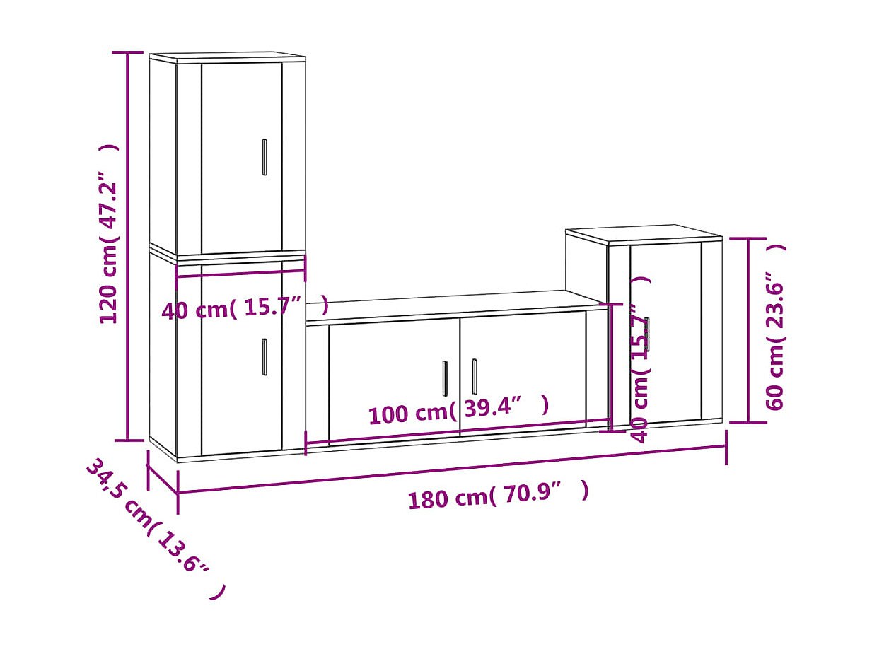 Albert-Etienne 4-delige Tv-meubelset bewerkt hout betongrijs