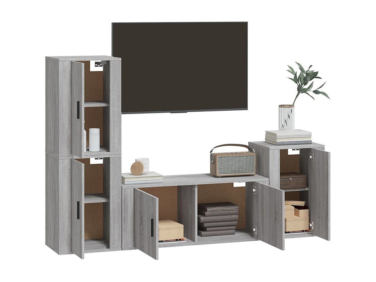 Albert-Etienne 4-delige Tv-meubelset bewerkt hout grijs sonoma eikenkleurig