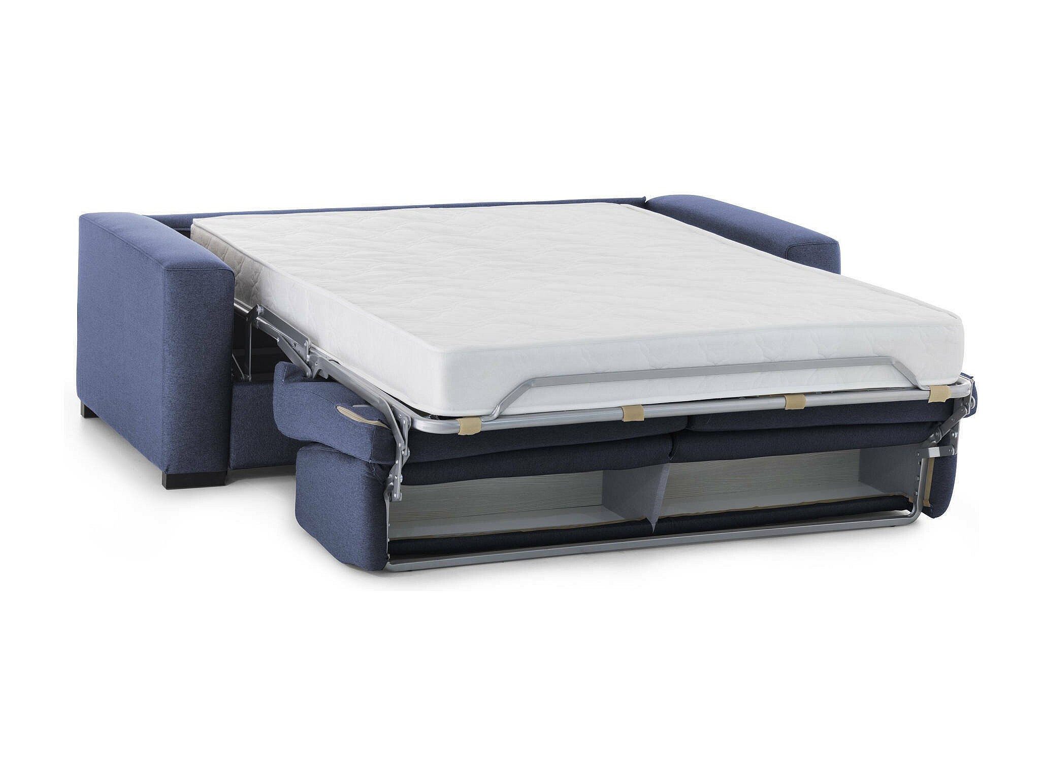 Alexis slaapbank, grote 2-zitsbank, 100% Made in Italy, woonkamerbank met draaibare opening, in gewatteerde stof, met standaard armleuningen, 200x95h90 cm, blauw