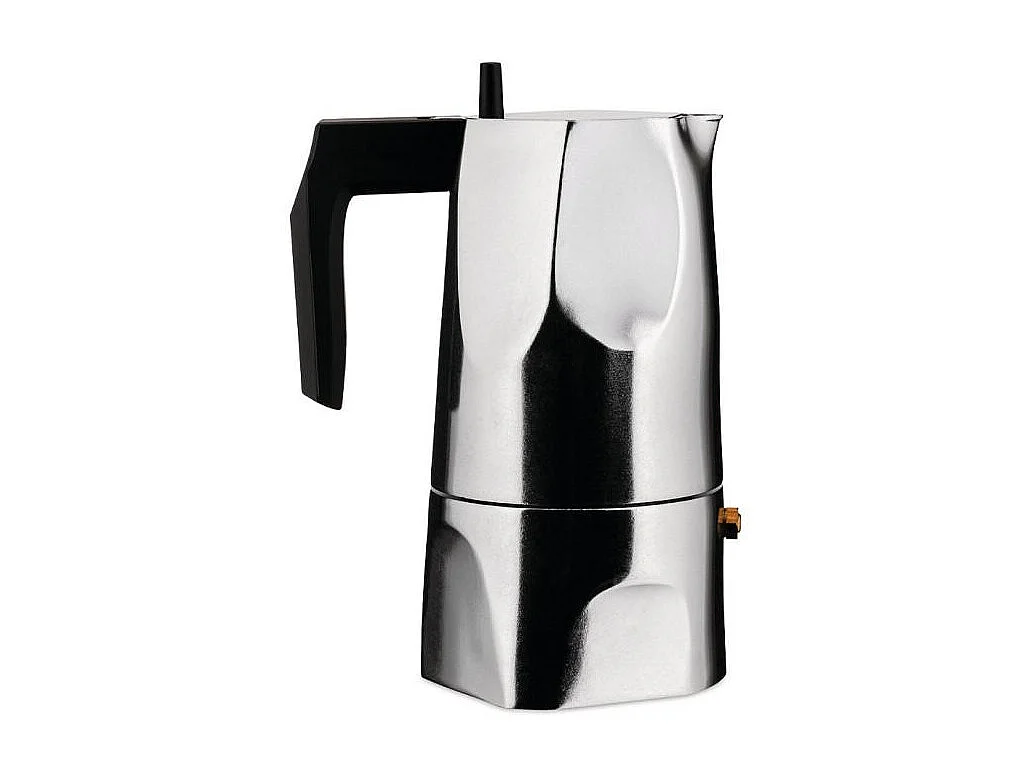 Alessi MT18 3 Ossidiana koffiemachine van grijs aluminium, design Mario Trimarchi, 8,5 cm breed