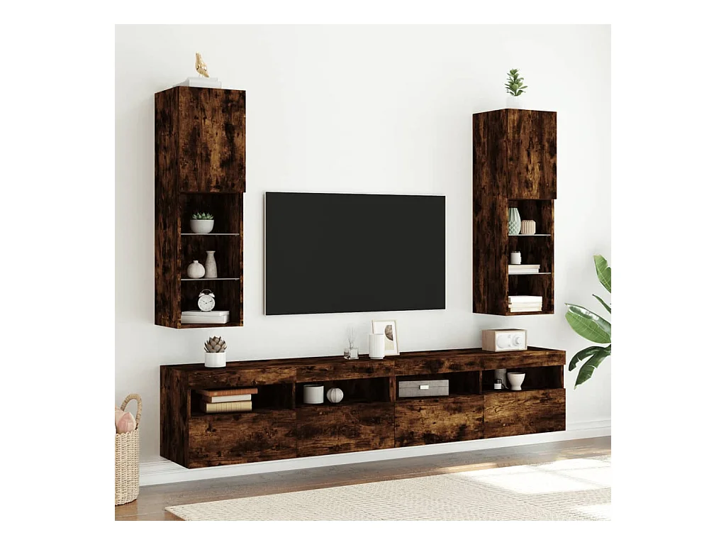 Almar Tv-meubels LED-verlichting 2 st 30,5x30x102 cm gerookt eiken