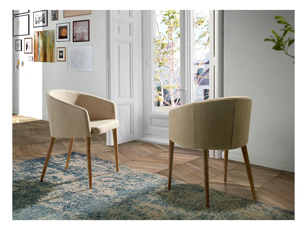 Amandine stoel van essenhout en beige stof - Set van 2-Kleur Aqua04 Beige