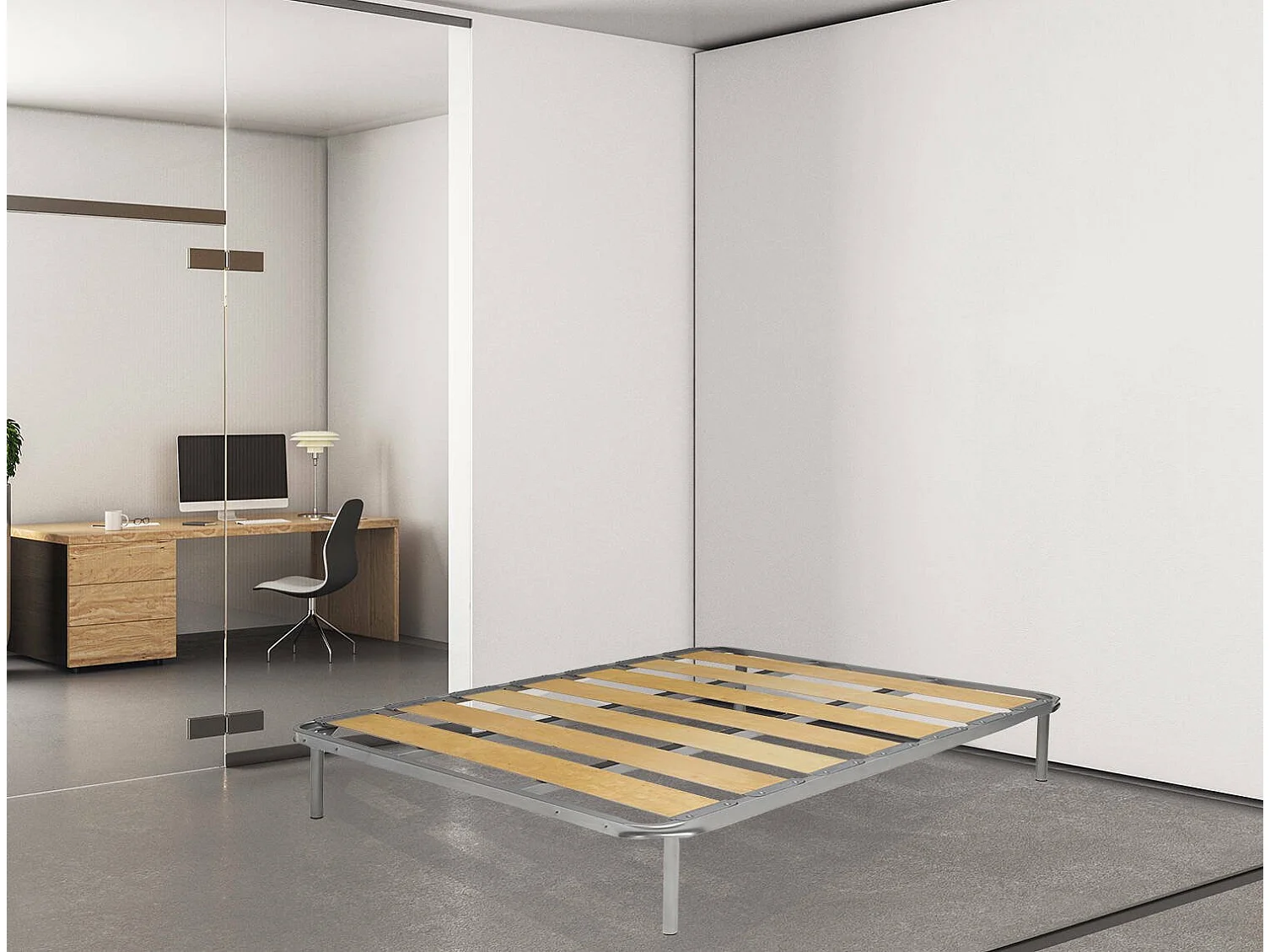 Talamo Italië Anagaia Tweepersoons Bedframe 190x160 cm Aluminiumgrijs, Draaggewicht 180 kg, Poothoogte 31 cm Made in Italy