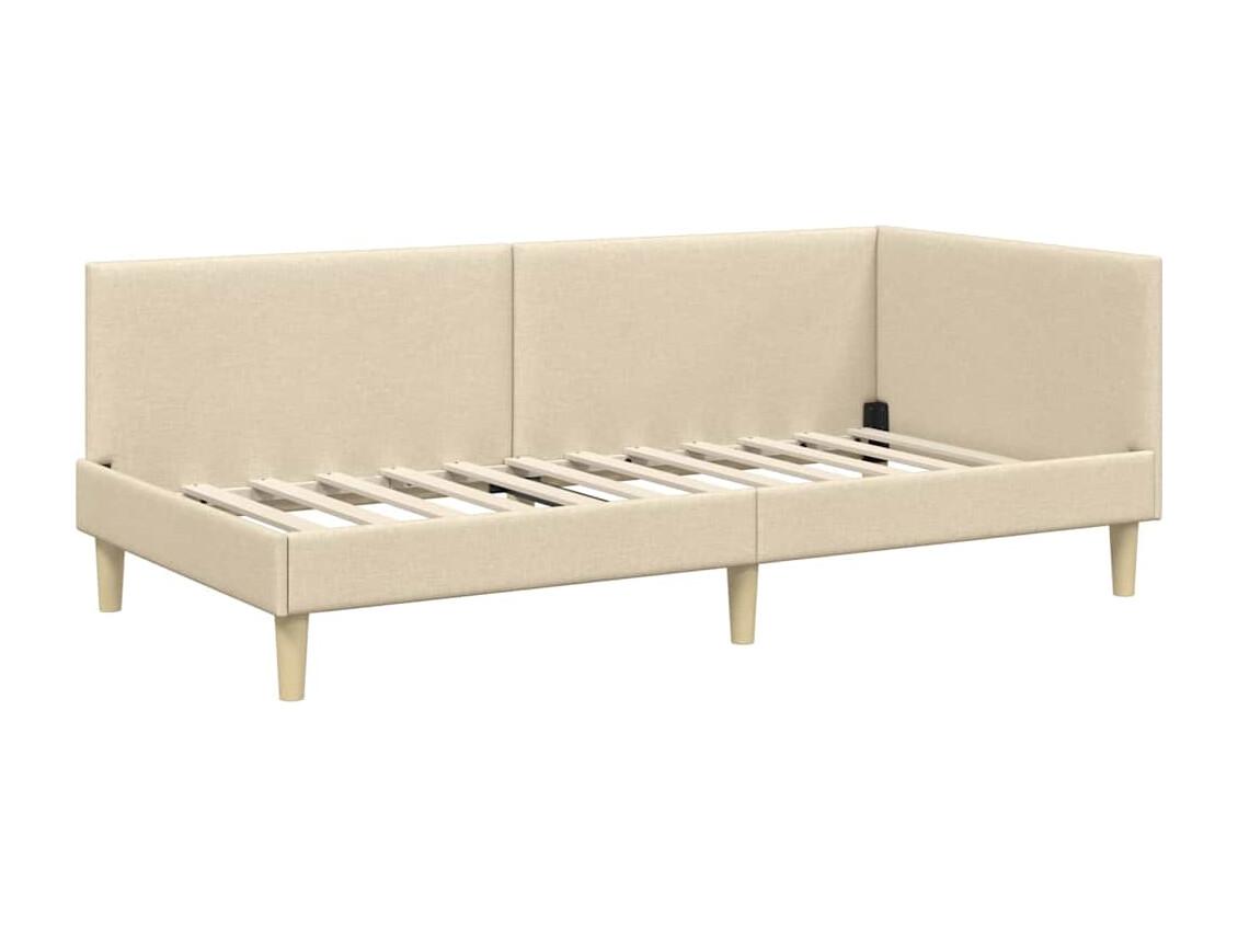 Hoek Bed Frame Crème 100 x 200 cm Stof en Engineered Hout