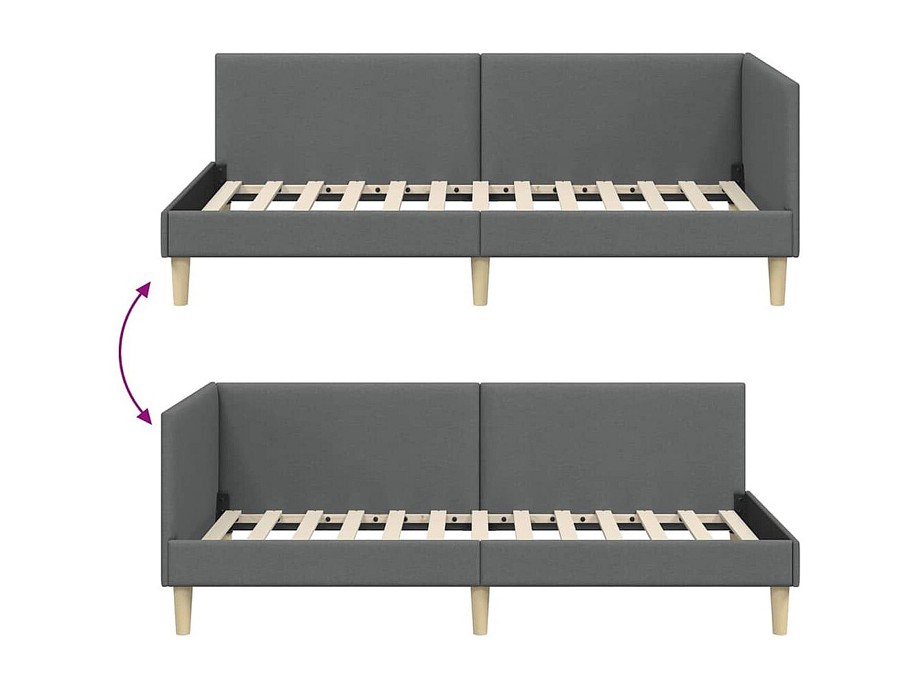 Hoek Bed Frame Donkergrijs 90 x 200 cm Stof en Engineered Hout