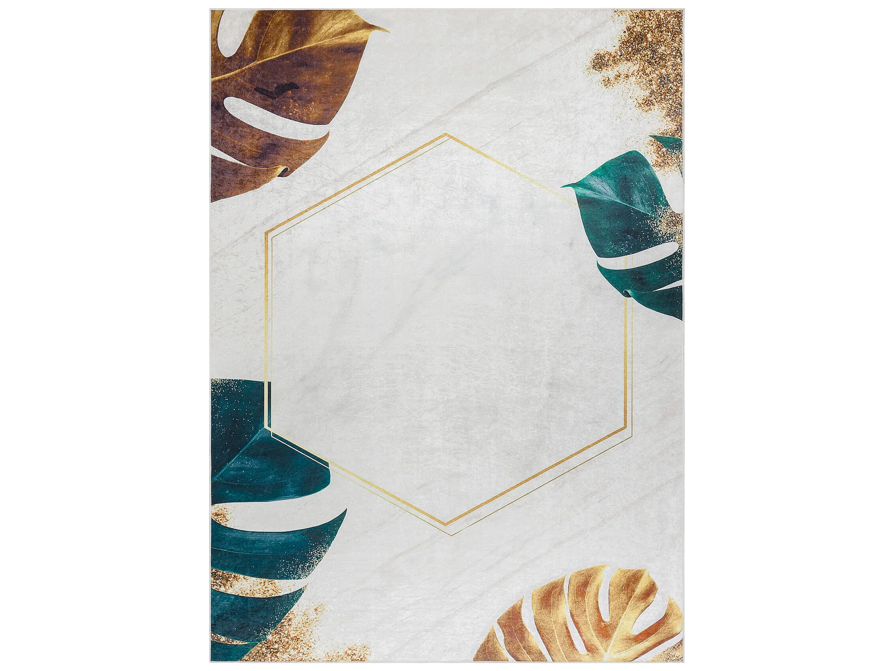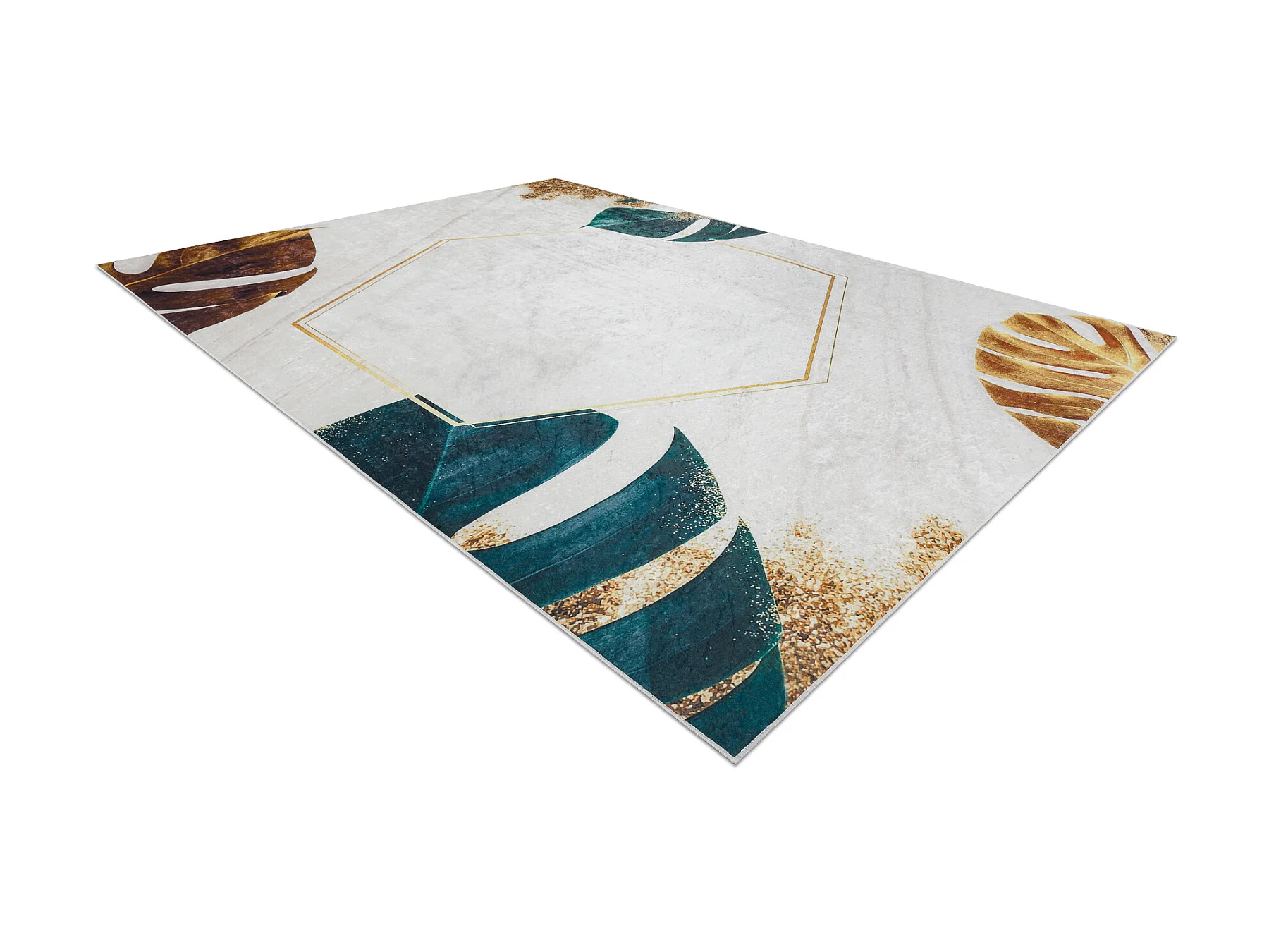ANDRE 1150 tapijt wasbaar Monstera vertrekt, kubus antislip - wit / go 120x170 cm
