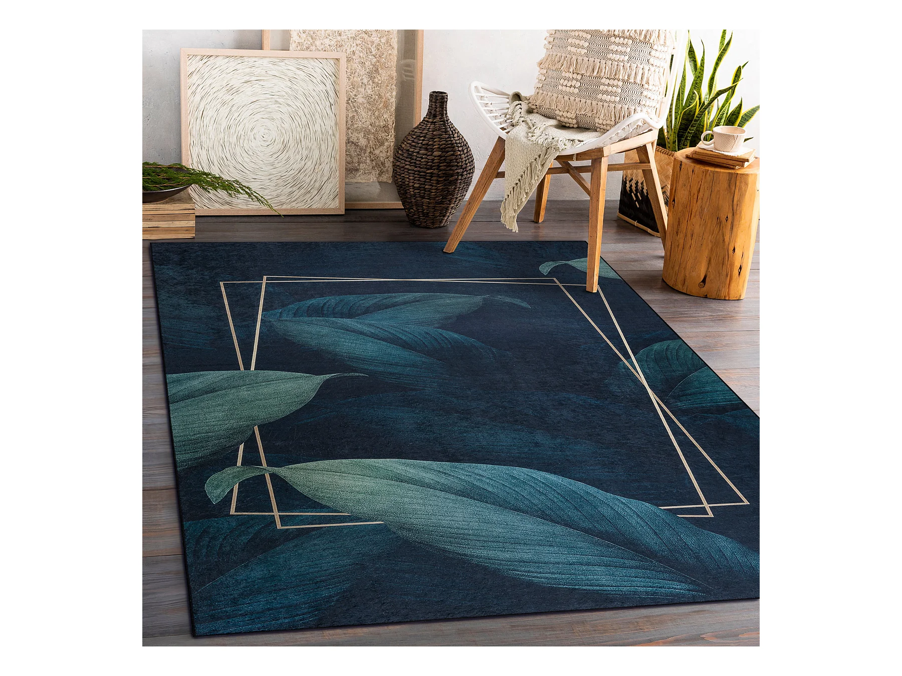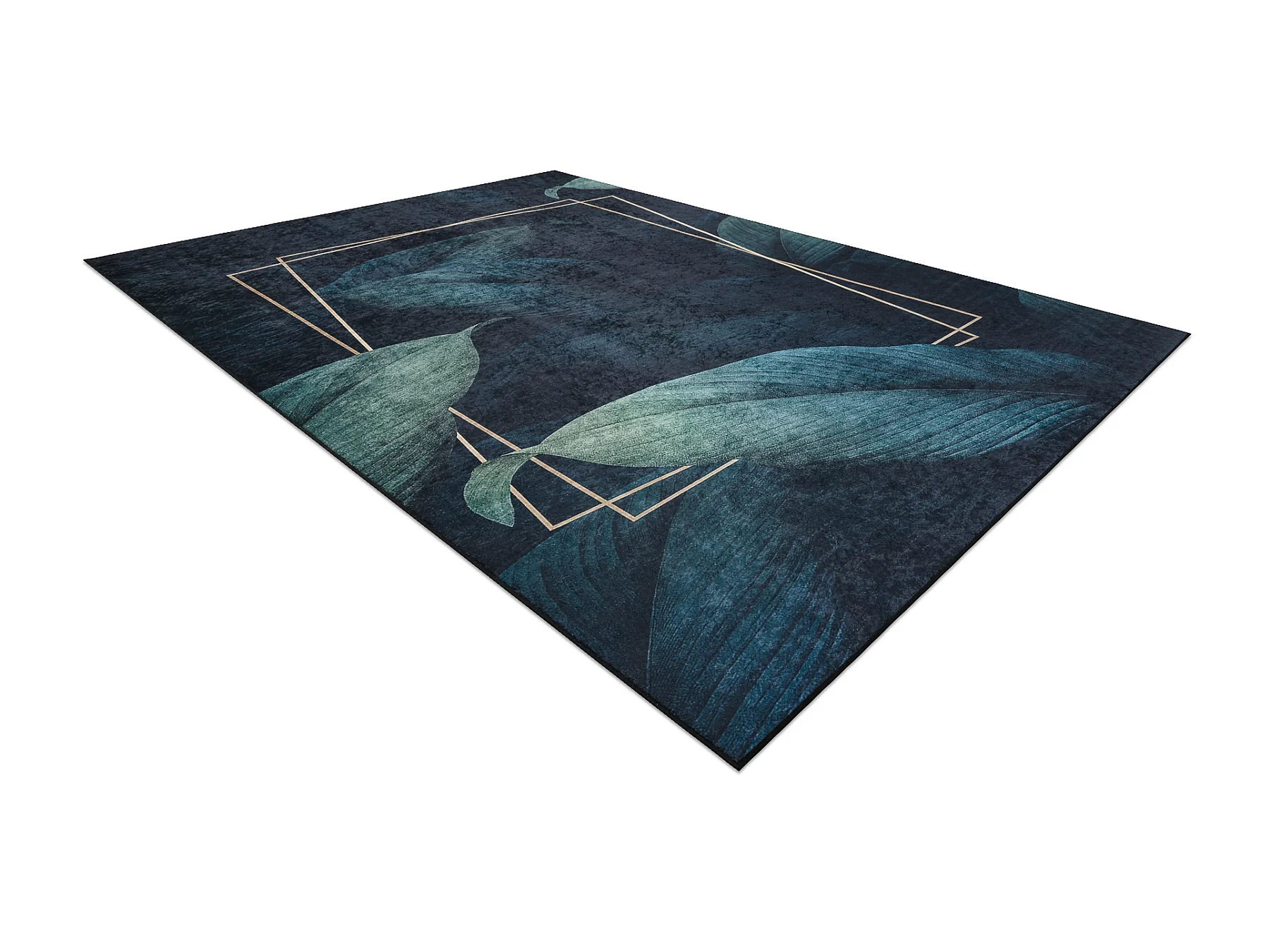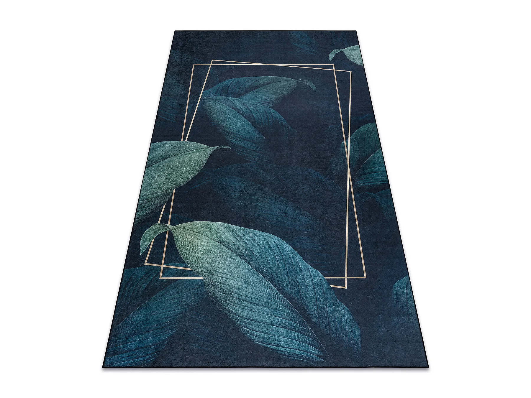 ANDRE 1170 tapijt wasbaar Bladeren, geometrisch antislip - blauw 80x150 cm