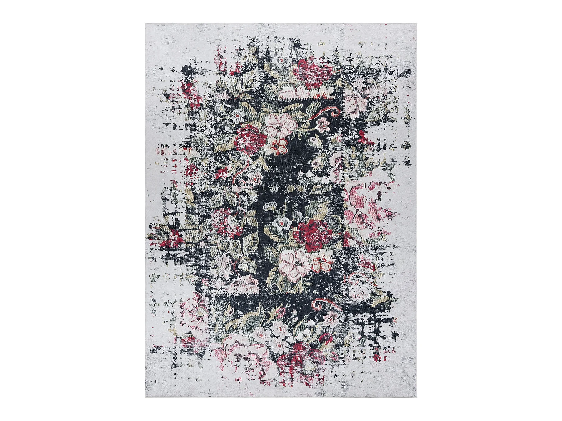 ANDRE 1816D tapijt wasbaar bloemen vintage antislip - wit / rood 80x150 cm