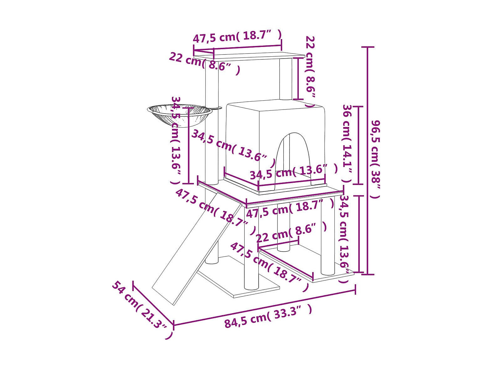 Mucahit Kattenmeubel met sisal krabpalen 199 cm lichtgrijs