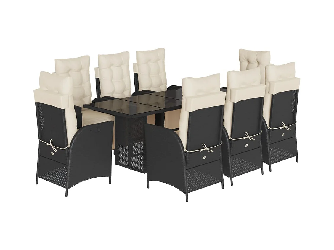 Wausau 9-delige Tuinset met kussens poly rattan zwart