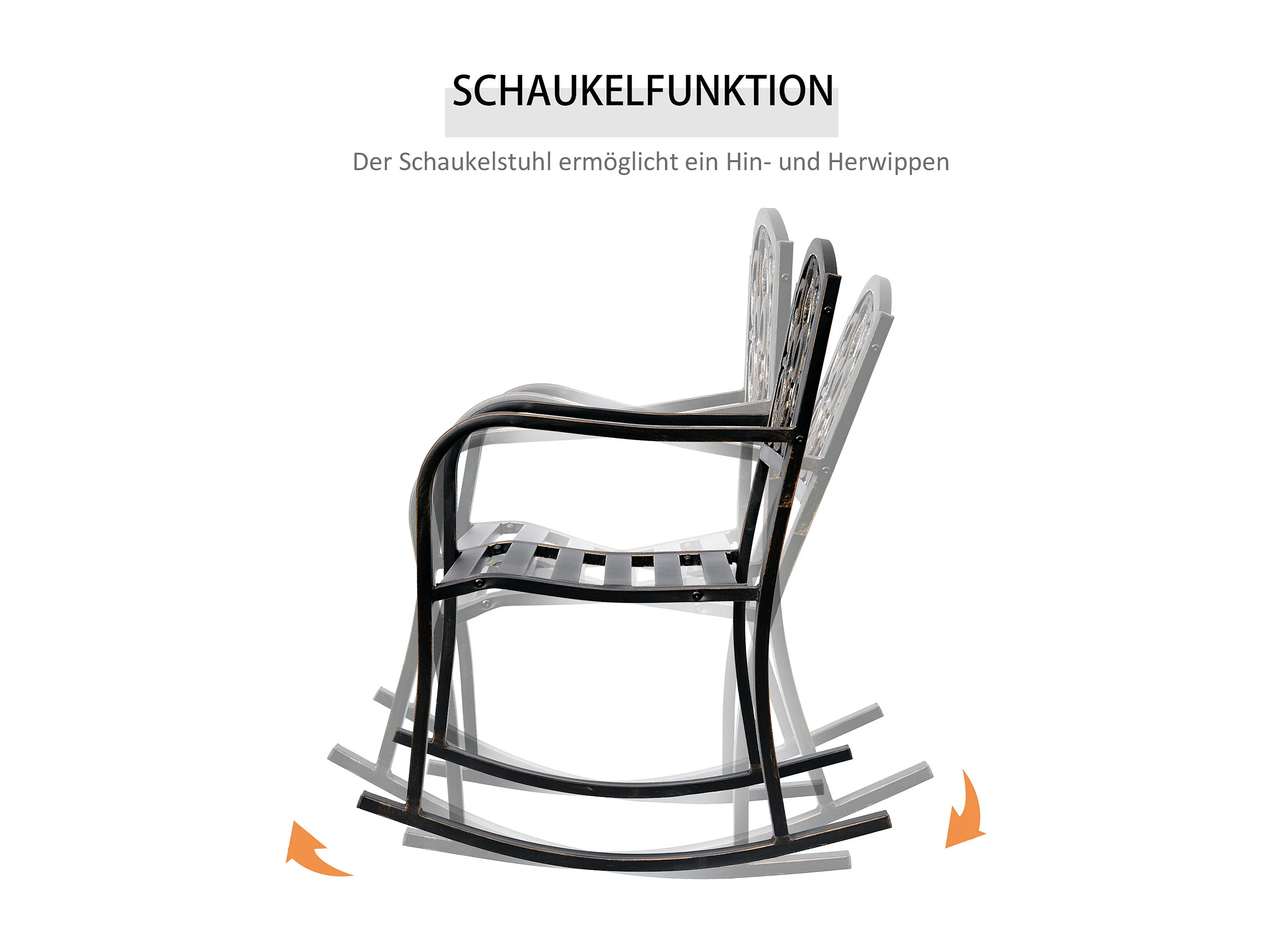 Antieke design metalen tuinschommelstoel, brons (60x73x85cm)