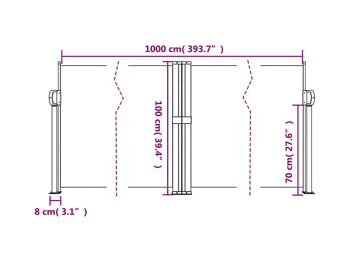 Antraciet uitschuifbare zijluifel 100x1000 cm