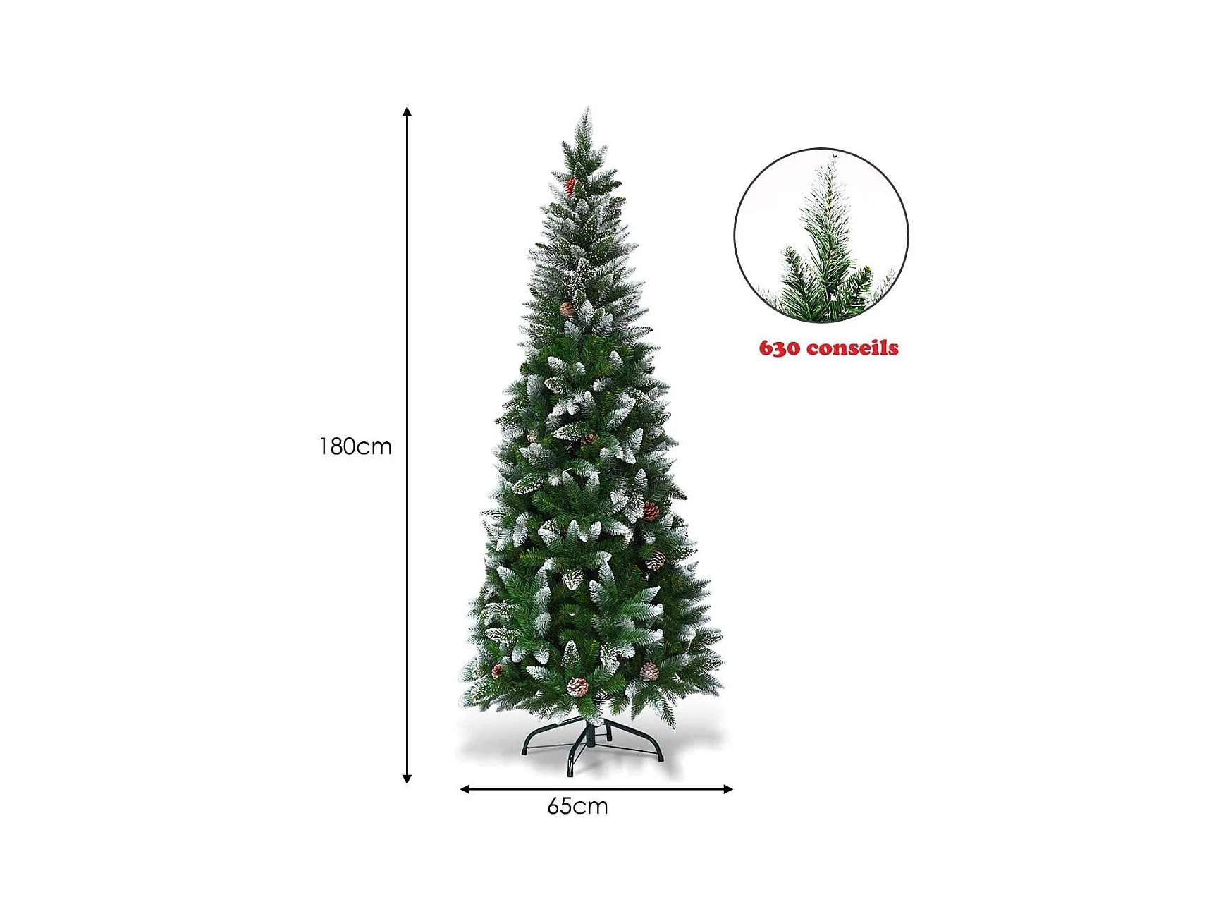 Arbre de noël artificiel 180cm aiguilles en pvc avec neige,630 branches vert