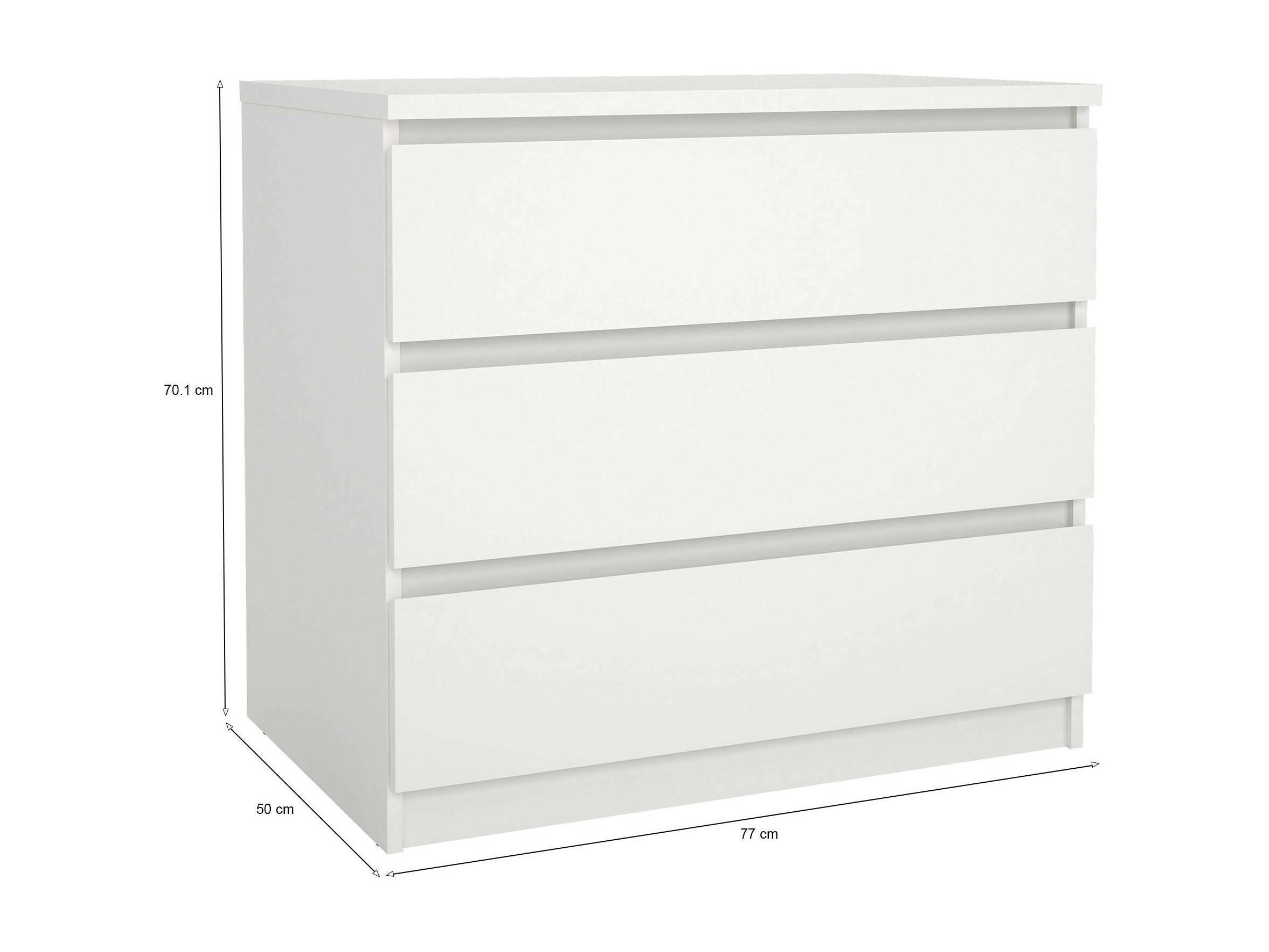 TECHNISCHE EIGENSCHAPPEN - Veelzijdig meubelaccessoire, ontworpen voor eenvoudige integratie met ander meubilair - Duurzame verpakking, ontworpen voor e-commerce - Materiaal: melaminespaanplaat - Aanvullende informatie: EPA 40 CFR TSCA-gecertificeerd artikel - Voldoet aan formaldehyde-afgifte volgens IOS/MAT/0181/ Richtlijnen EN 16866 - Gedemonteerd - Voorzien van montageset - Drie laden.