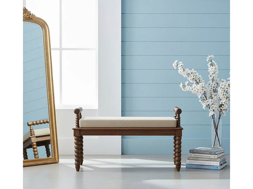 Artisan Furniture Bank Spindle Amber Linen, massief hout, chocoladebruin, gestoffeerde zitting in modderkleurig linnen