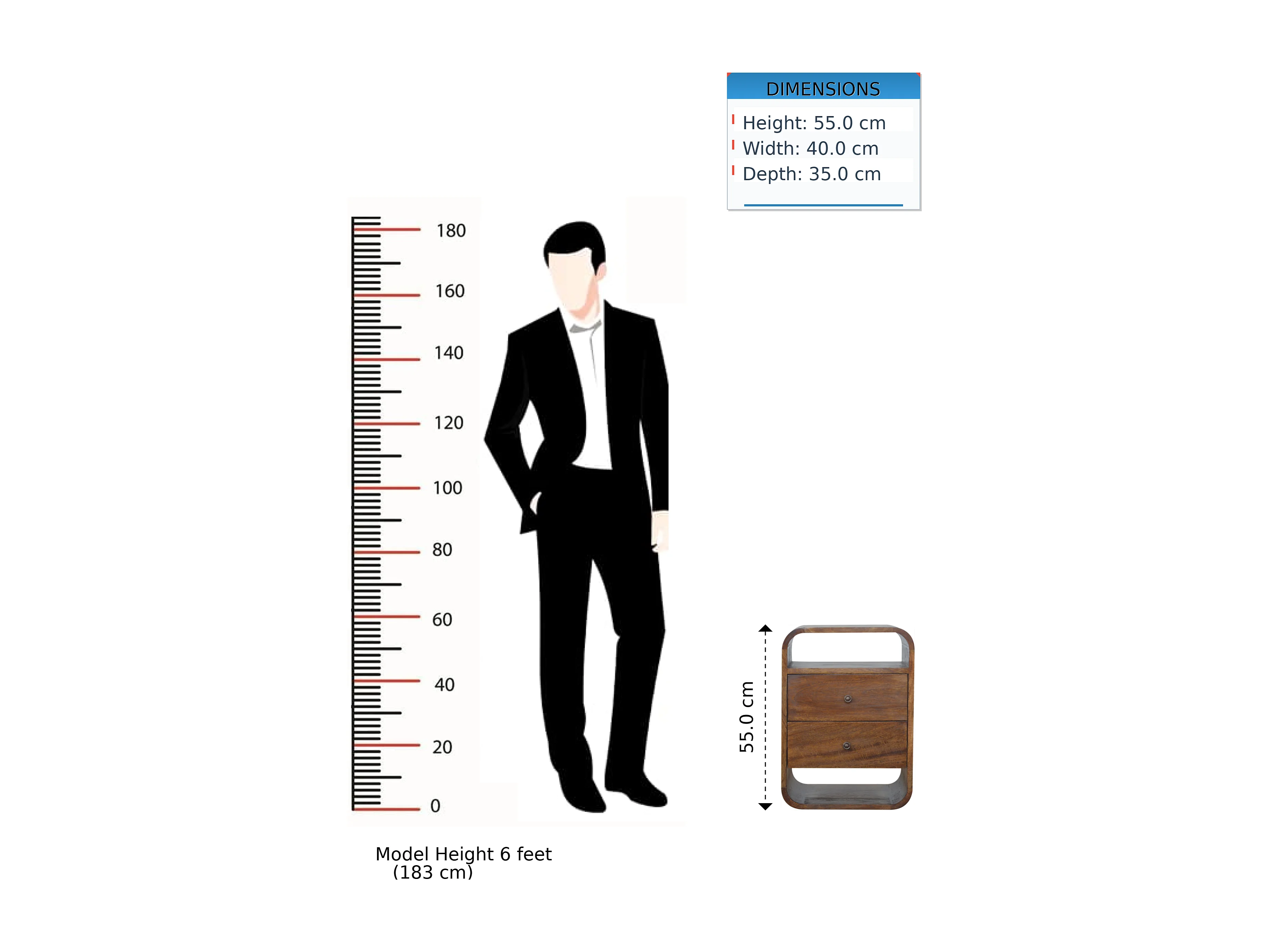 Artisan Furniture Massief hout Chestnut Curve nachtkastje met 2 lades