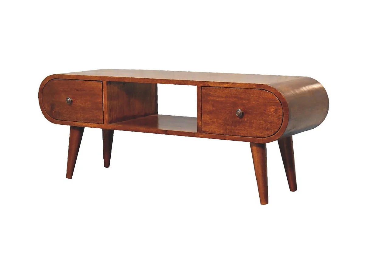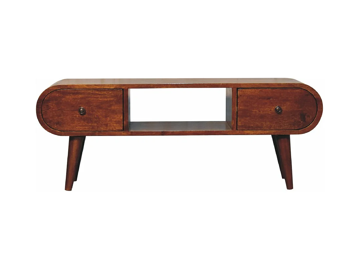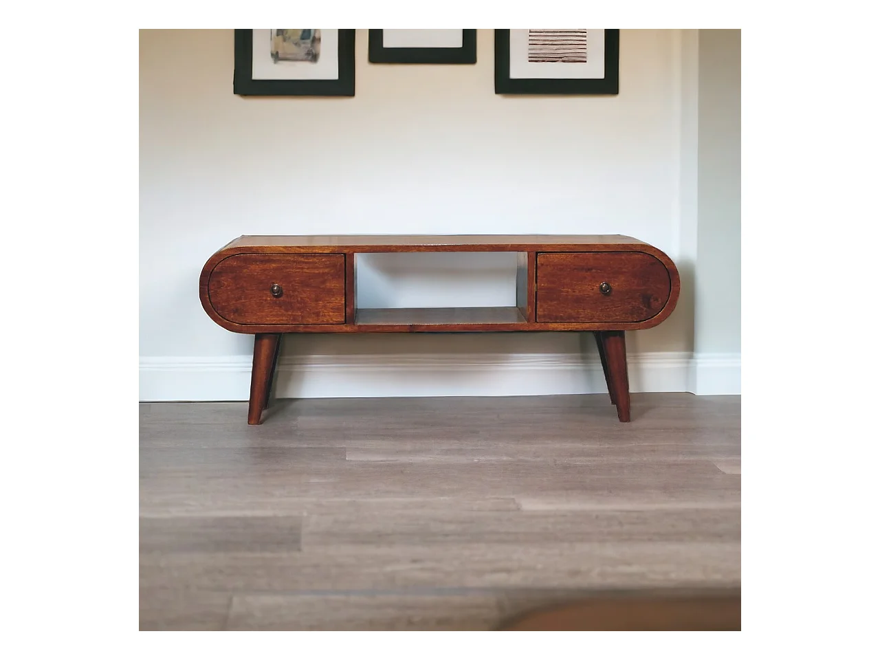 Artisan Furniture Massief Houten Mini Kastanje Gebogen Mediakast met 2 Laden, Woonkamer