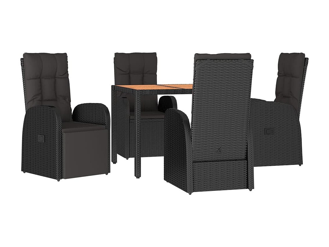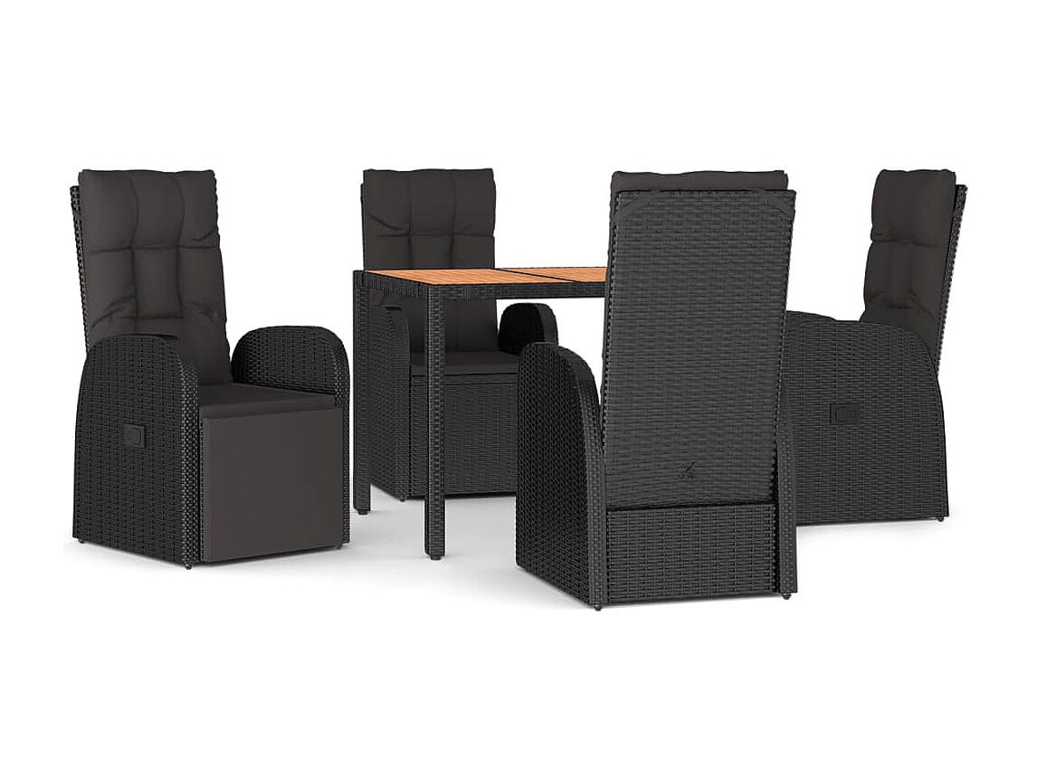 Garden Furniture - 5-delige Tuinset poly rattan en massief acaciahout zwart