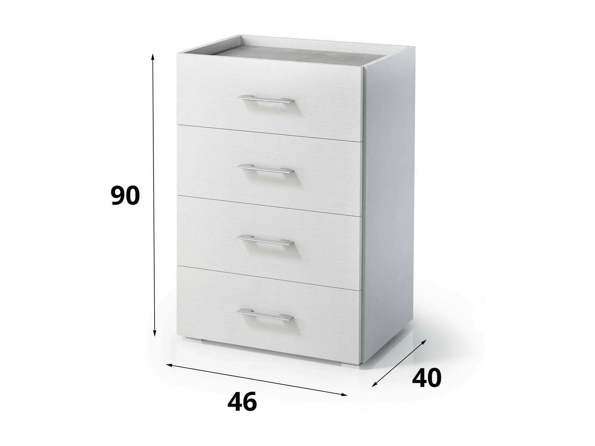 Dmora Ladekast Aster 41x50x87h cm Wit 4 Laden Met Glijdende Open/Sluiting, Gemaakt in Italië