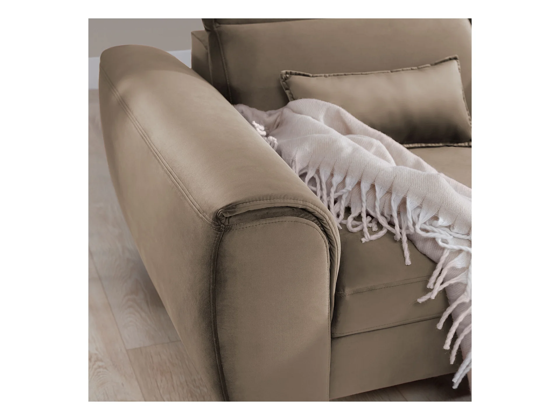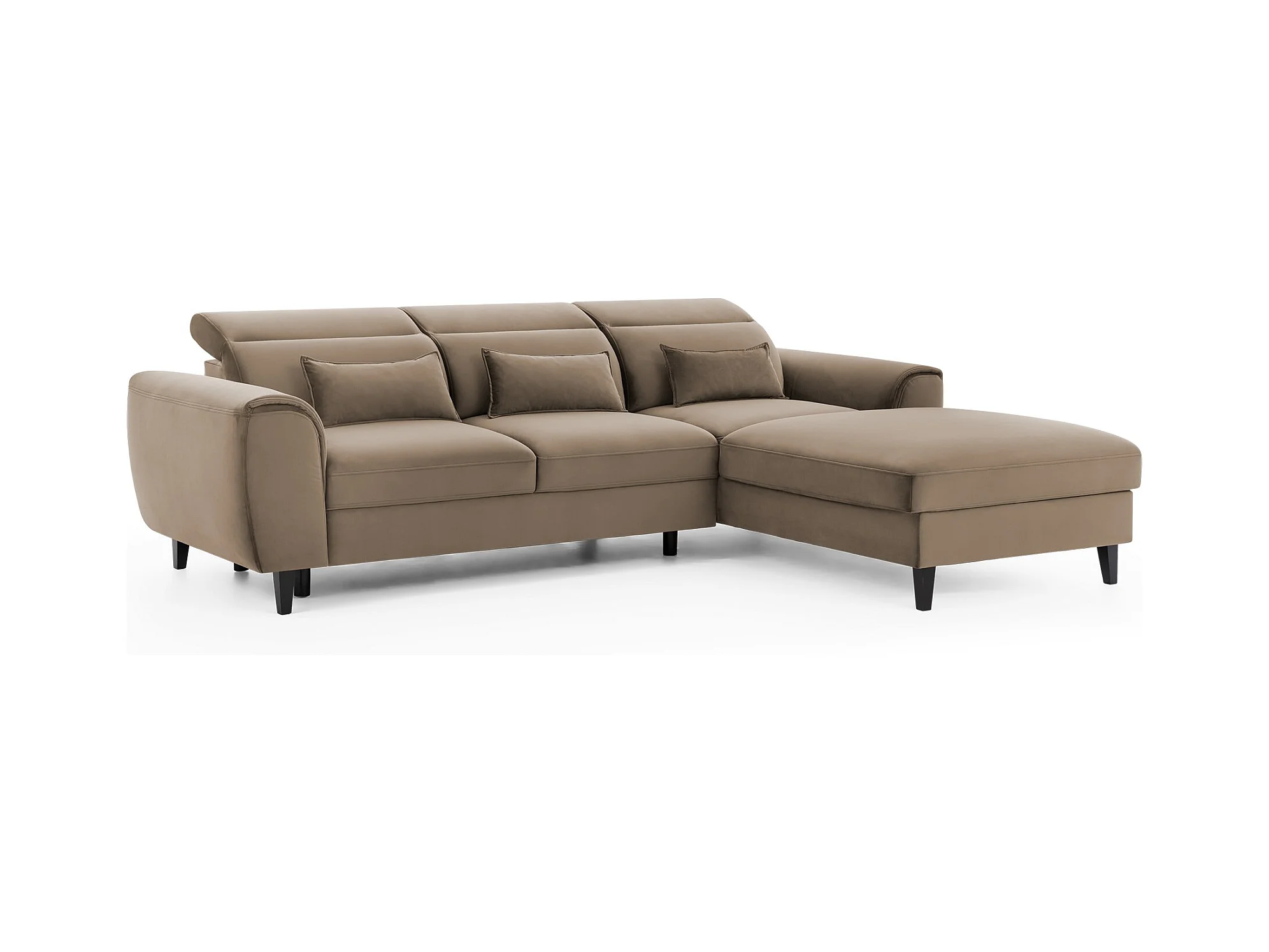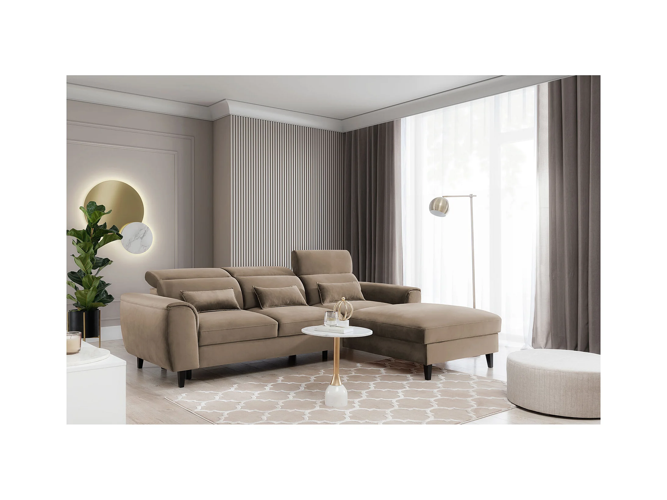 ASTORIA converteerbare fluwelen hoekbank met verstelbare hoofdsteunen - Zwarte houten kist en poten-Kleur Donker beige-juiste hoek