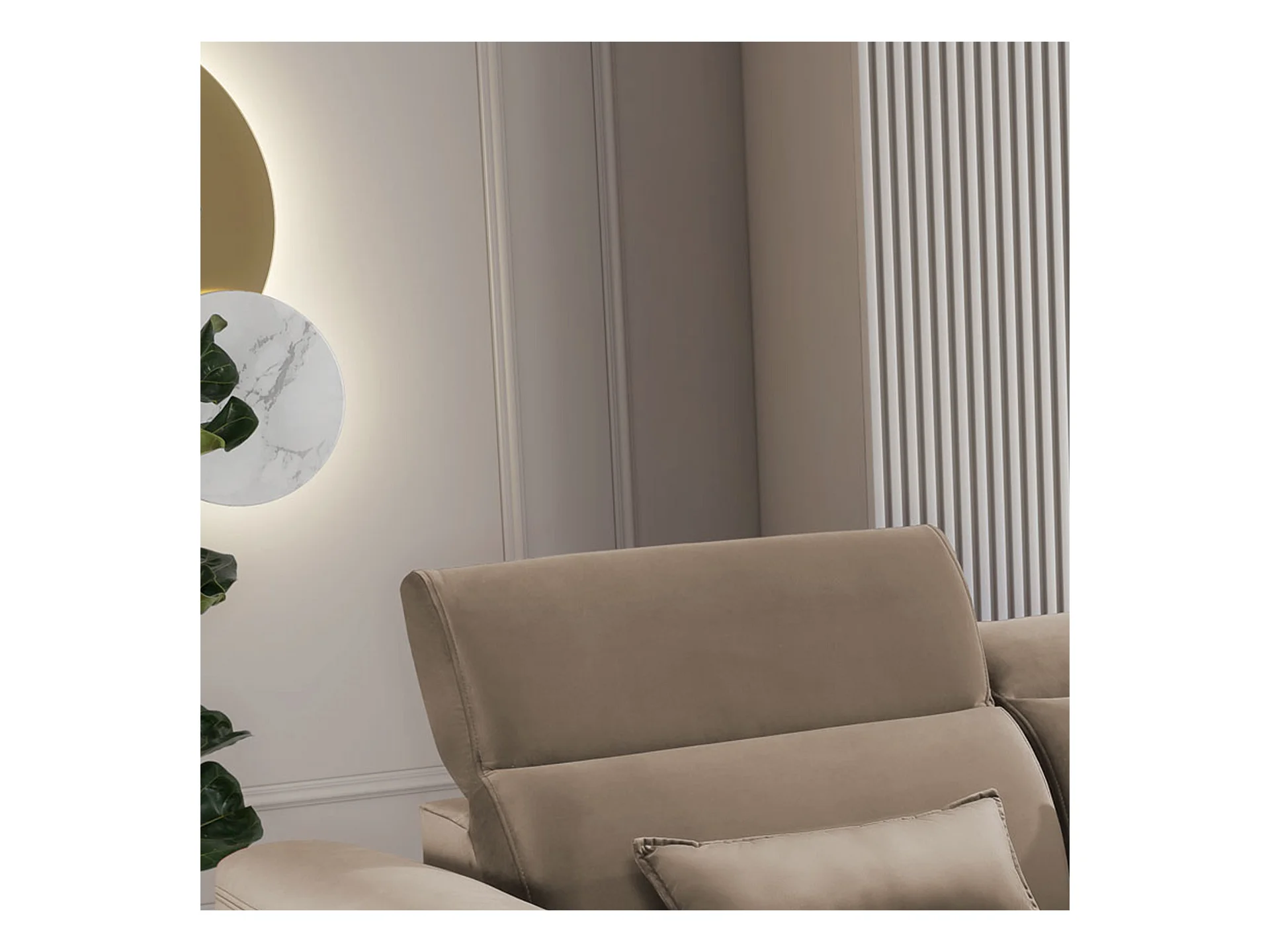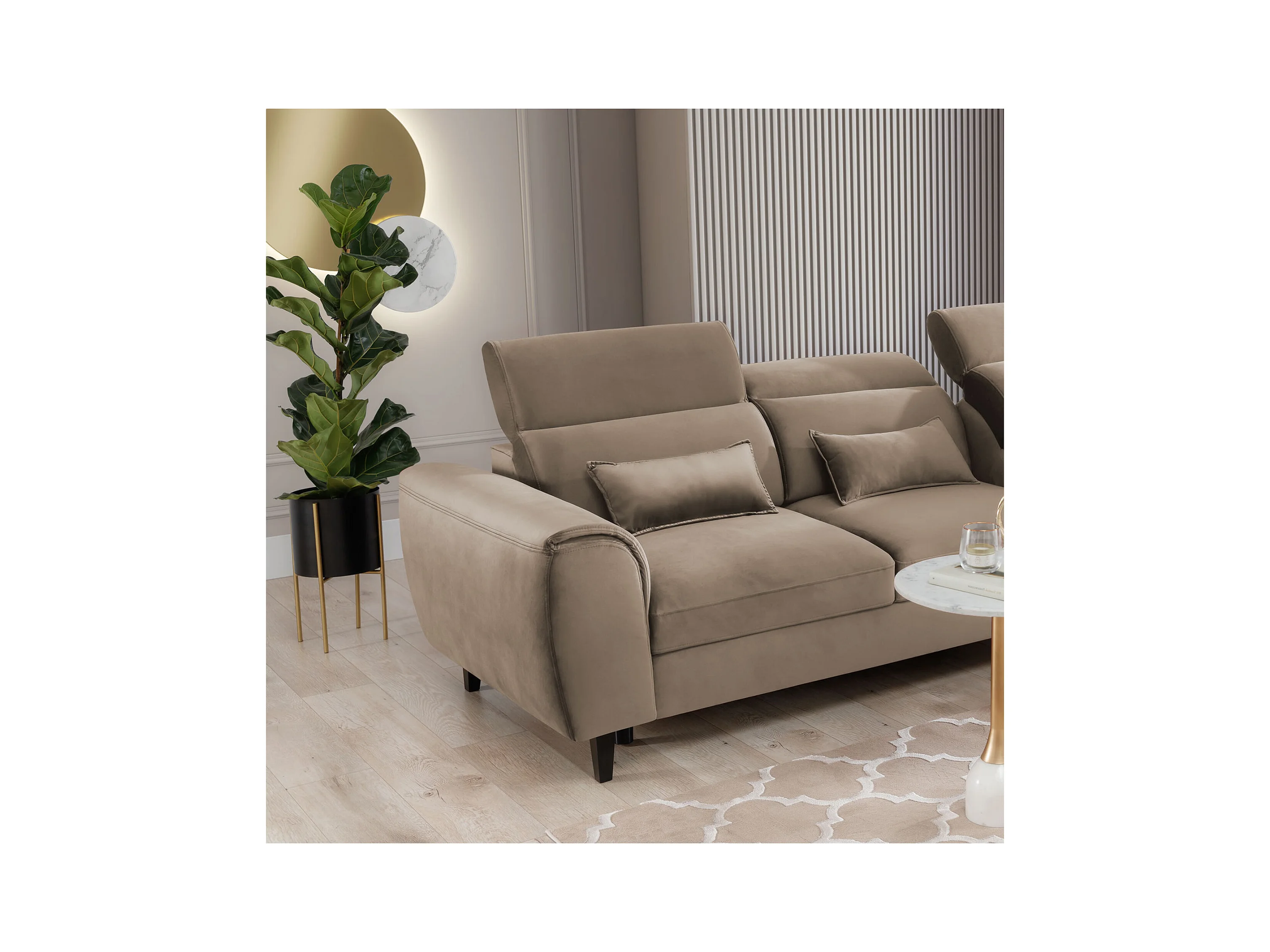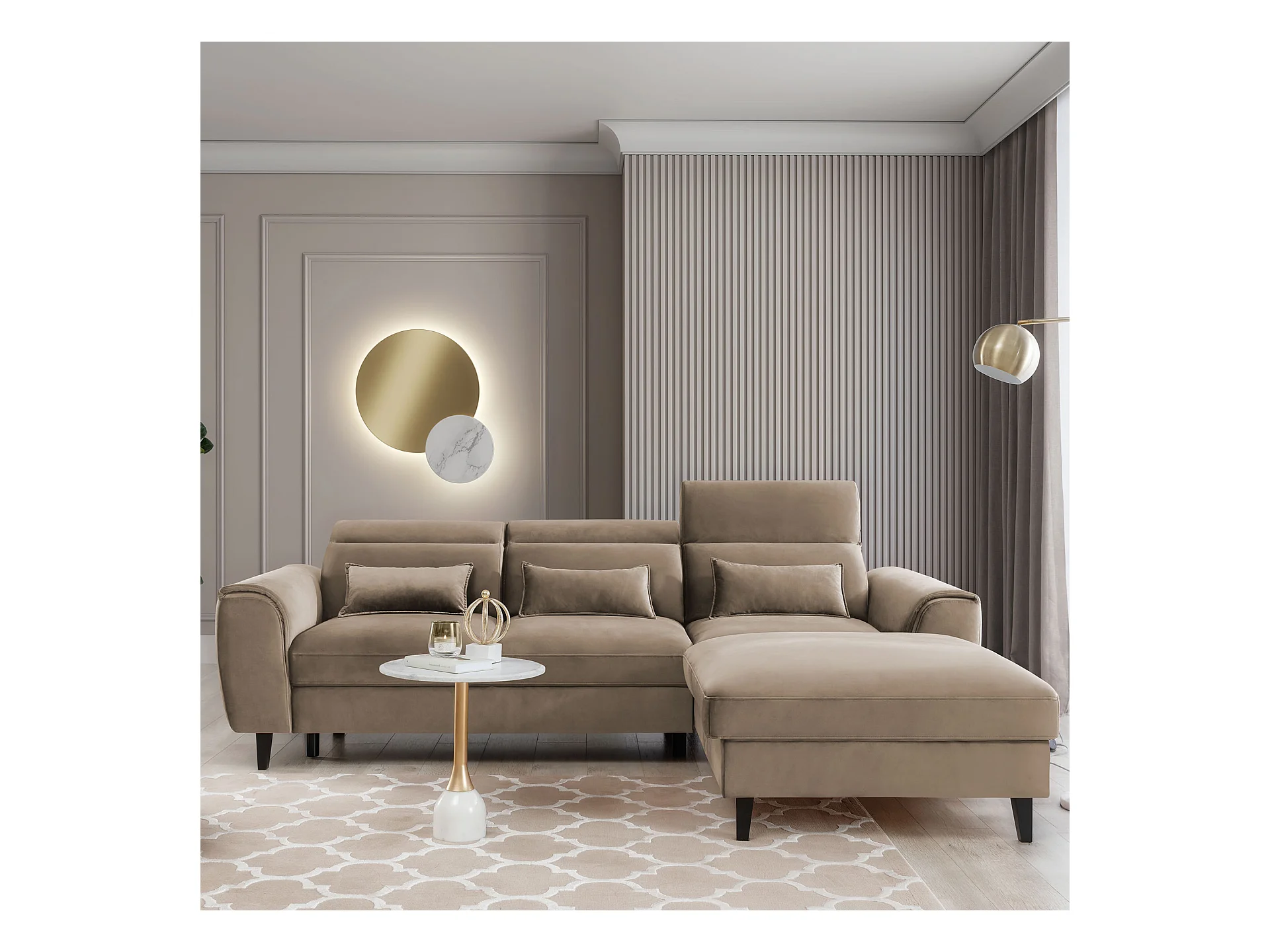 KATE omvormbare fluwelen hoekbank met verstelbare hoofdsteunen – Zwarte metalen opbergruimte en poten-Kleur Beige-juiste hoek