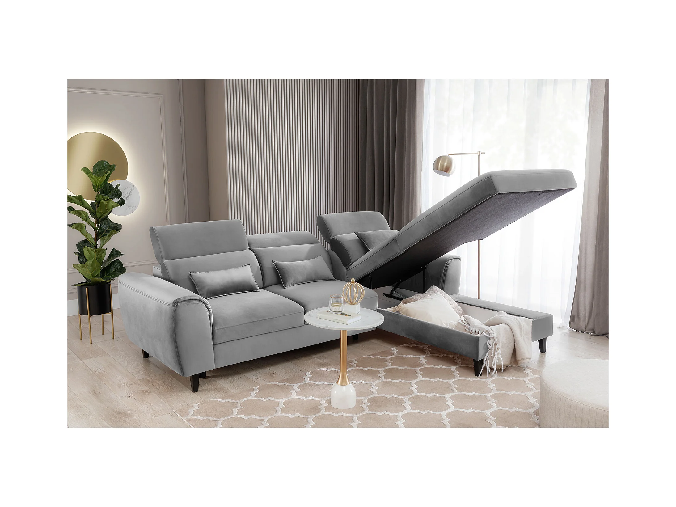 Majesté omvormbare hoekbank met opbergruimte in fluweel-Kleur Lichtgrijs-linkerhoek