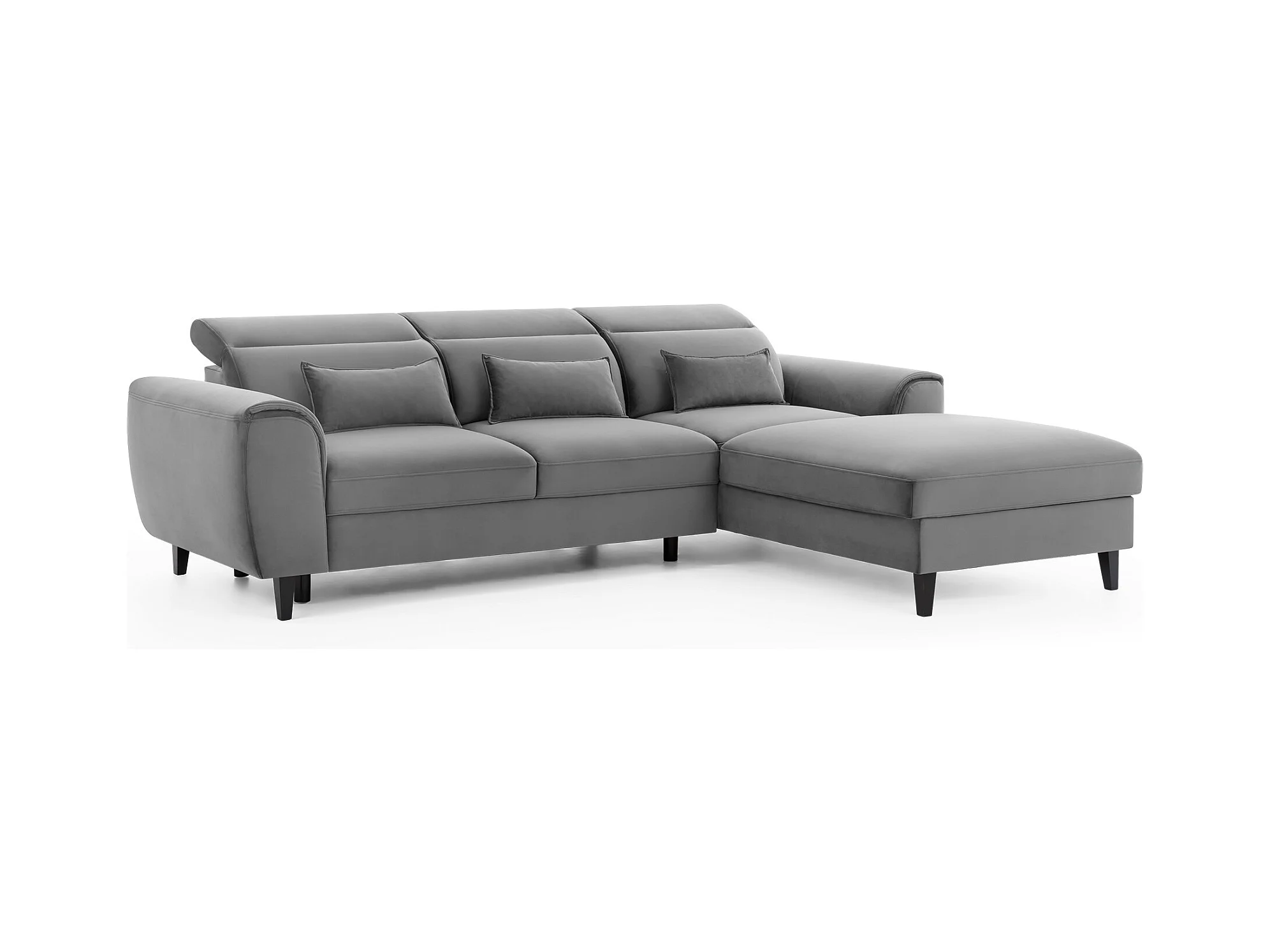 NOBLESSE omvormbare hoekbank met fluwelen opbergruimte - Zwarte houten poten-Kleur Grijs-linkerhoek