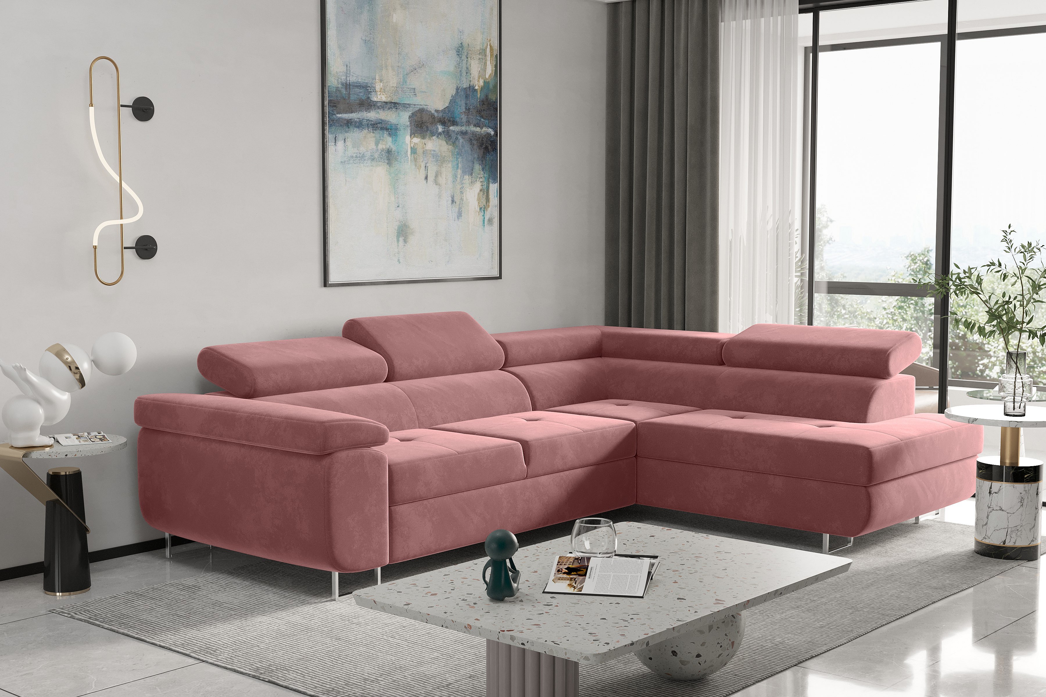 ATOM hoekbank met slaapfunctie, Monolith stof, roze, rechts