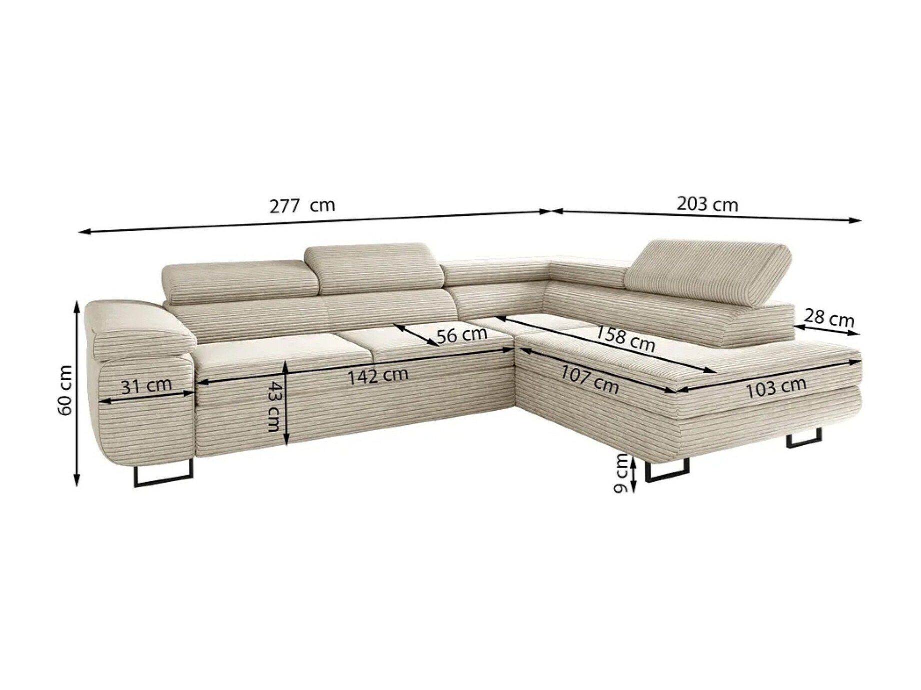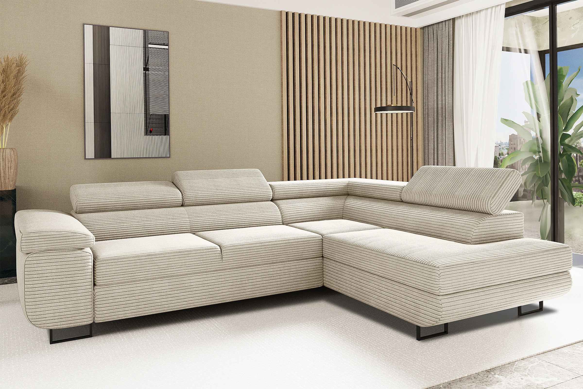 ATOMIC hoekbank met slaapfunctie, Poso stof, beige, rechts