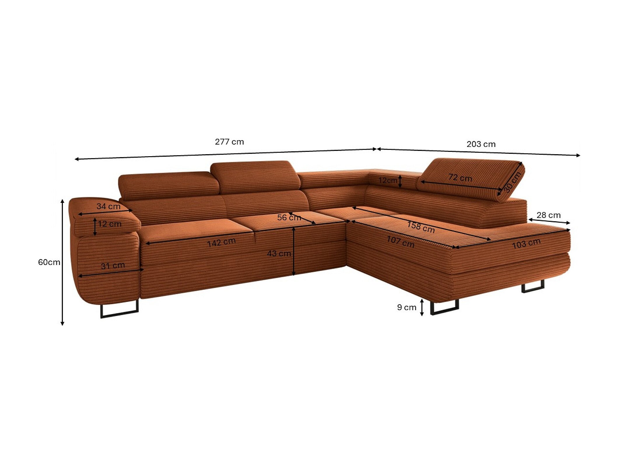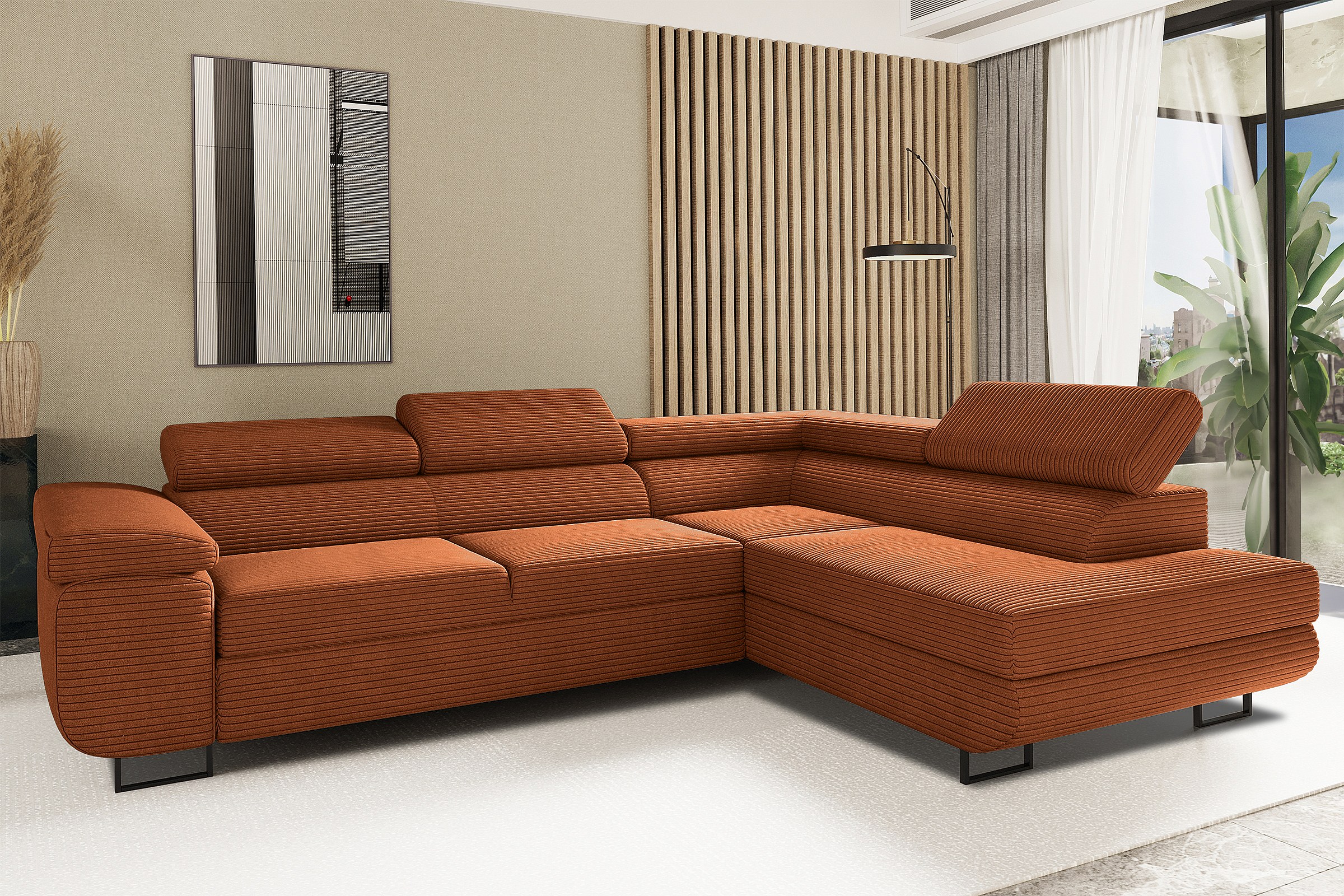 ATOMIC hoekbank met slaapfunctie, Poso stof, koper, rechts