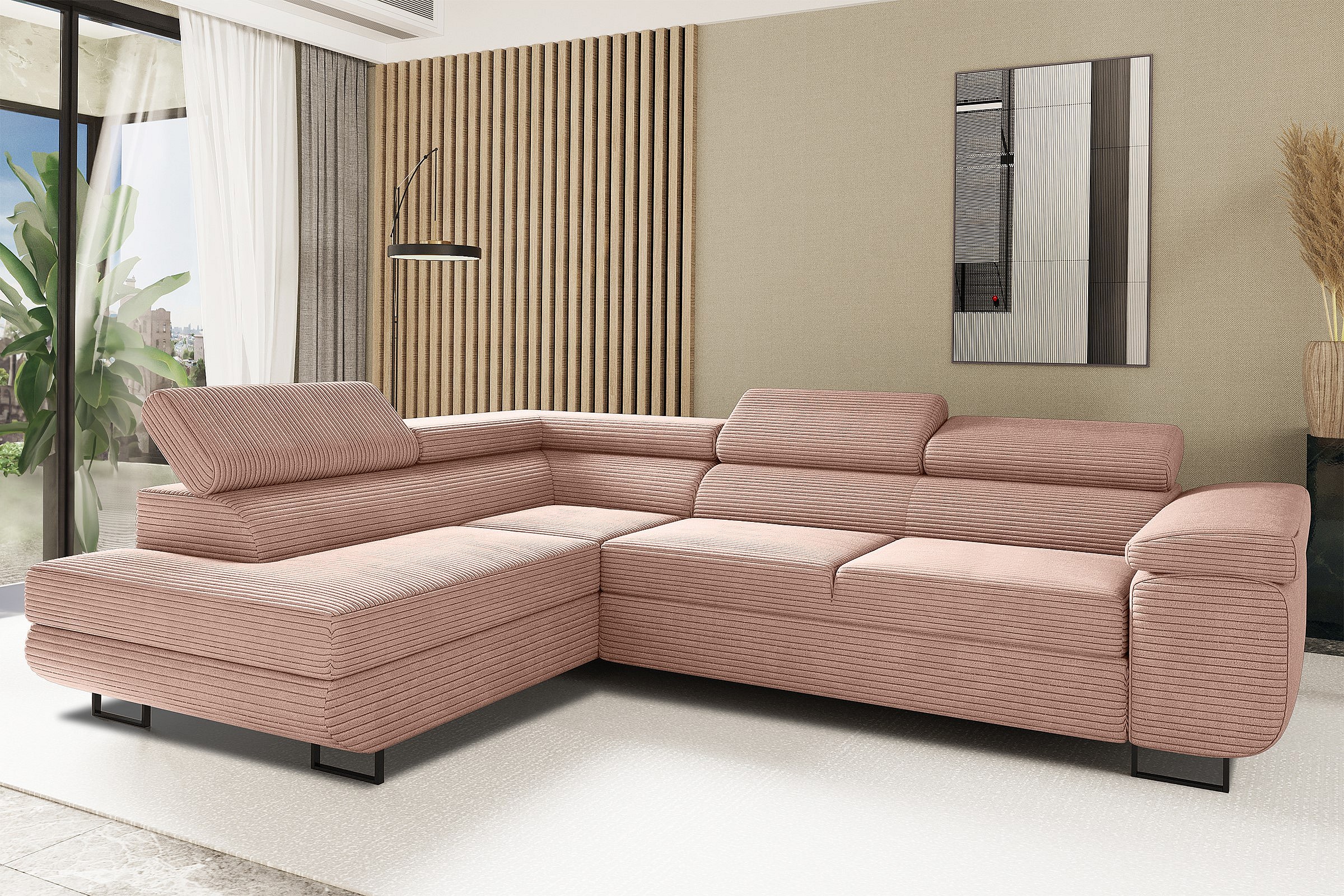 ATOMIC hoekbank met slaapfunctie, Poso stof, roze, links