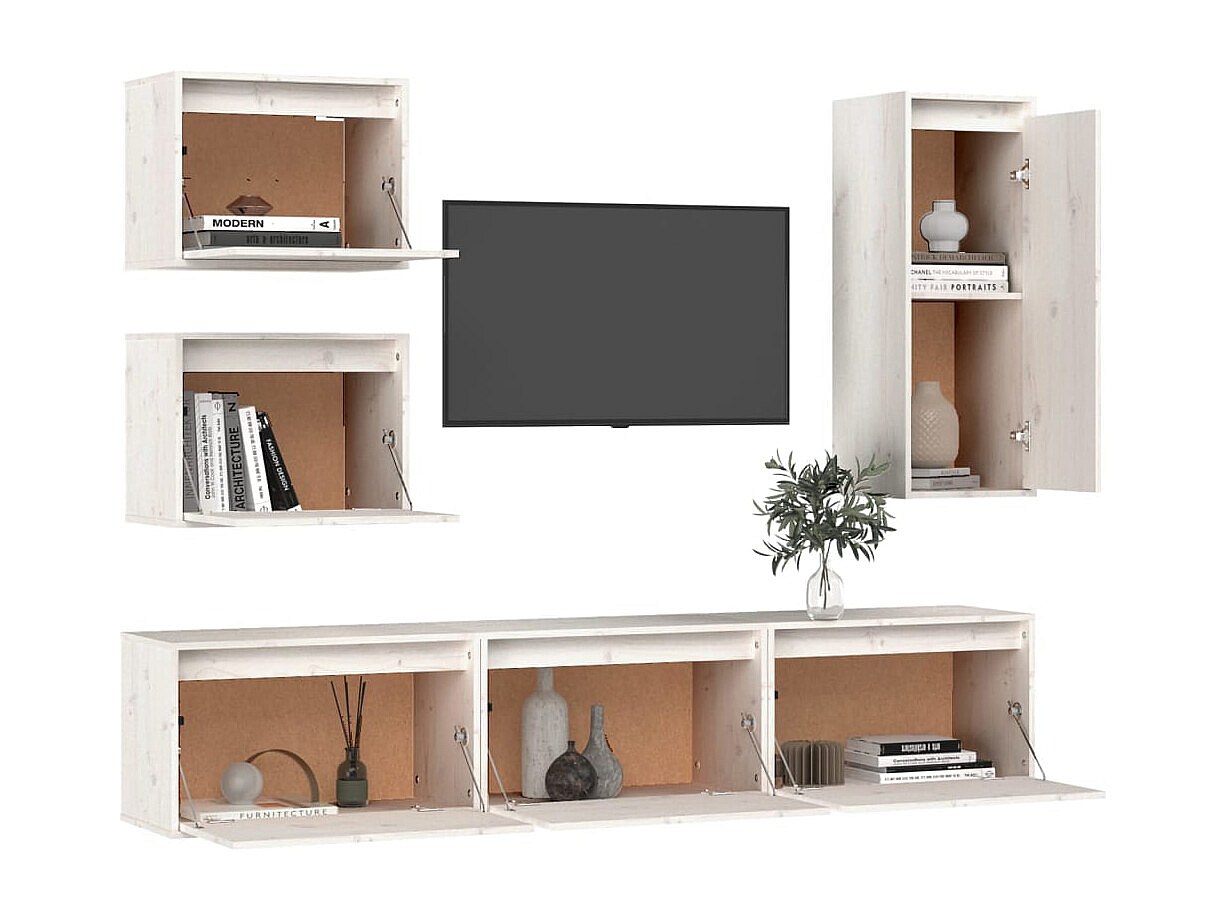 Attalla Tv-meubelen 6 st massief grenenhout wit