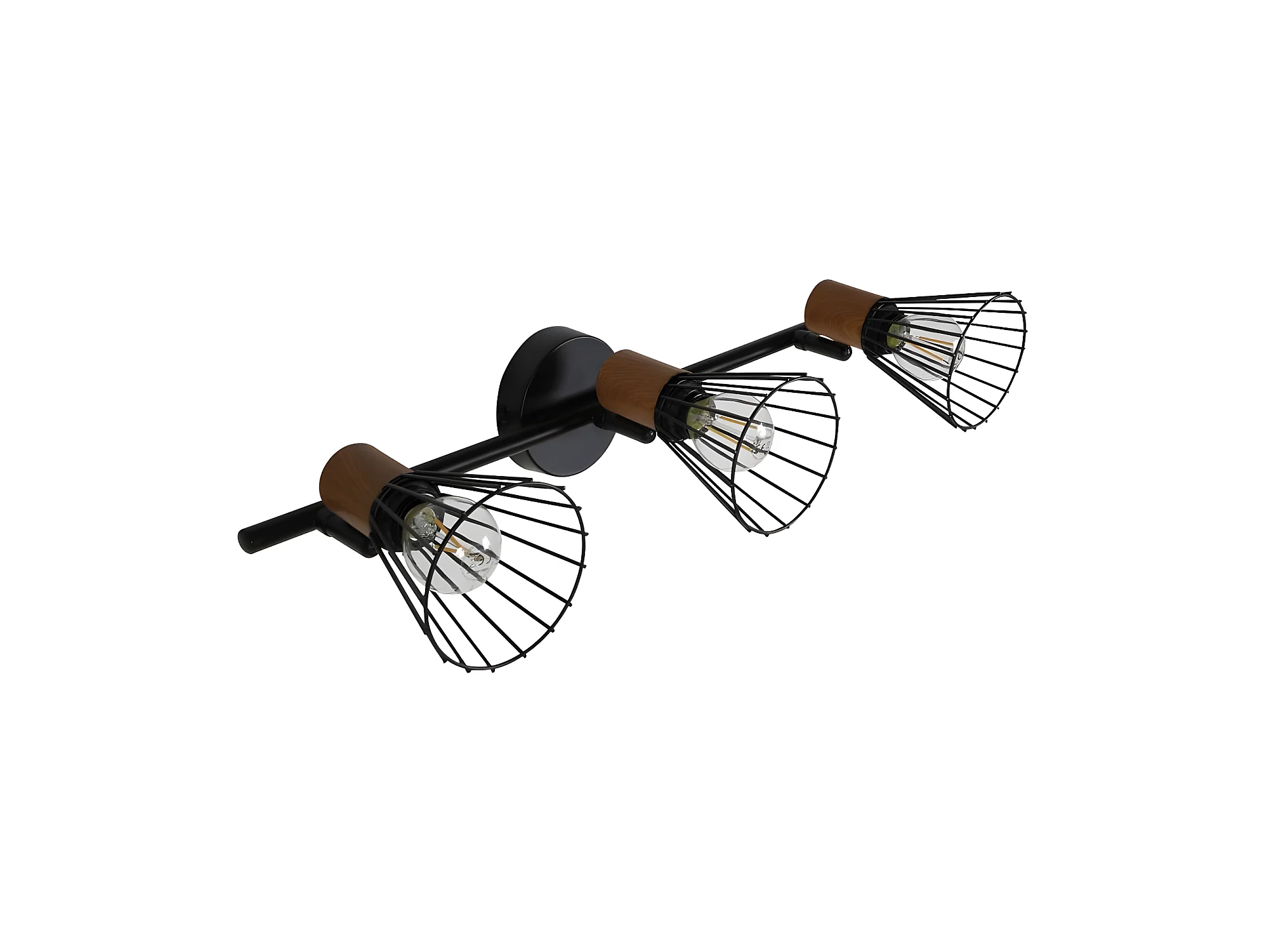 Atticus verlichting wandlamp 48,5x16,5x15cm staal zwart, hout.