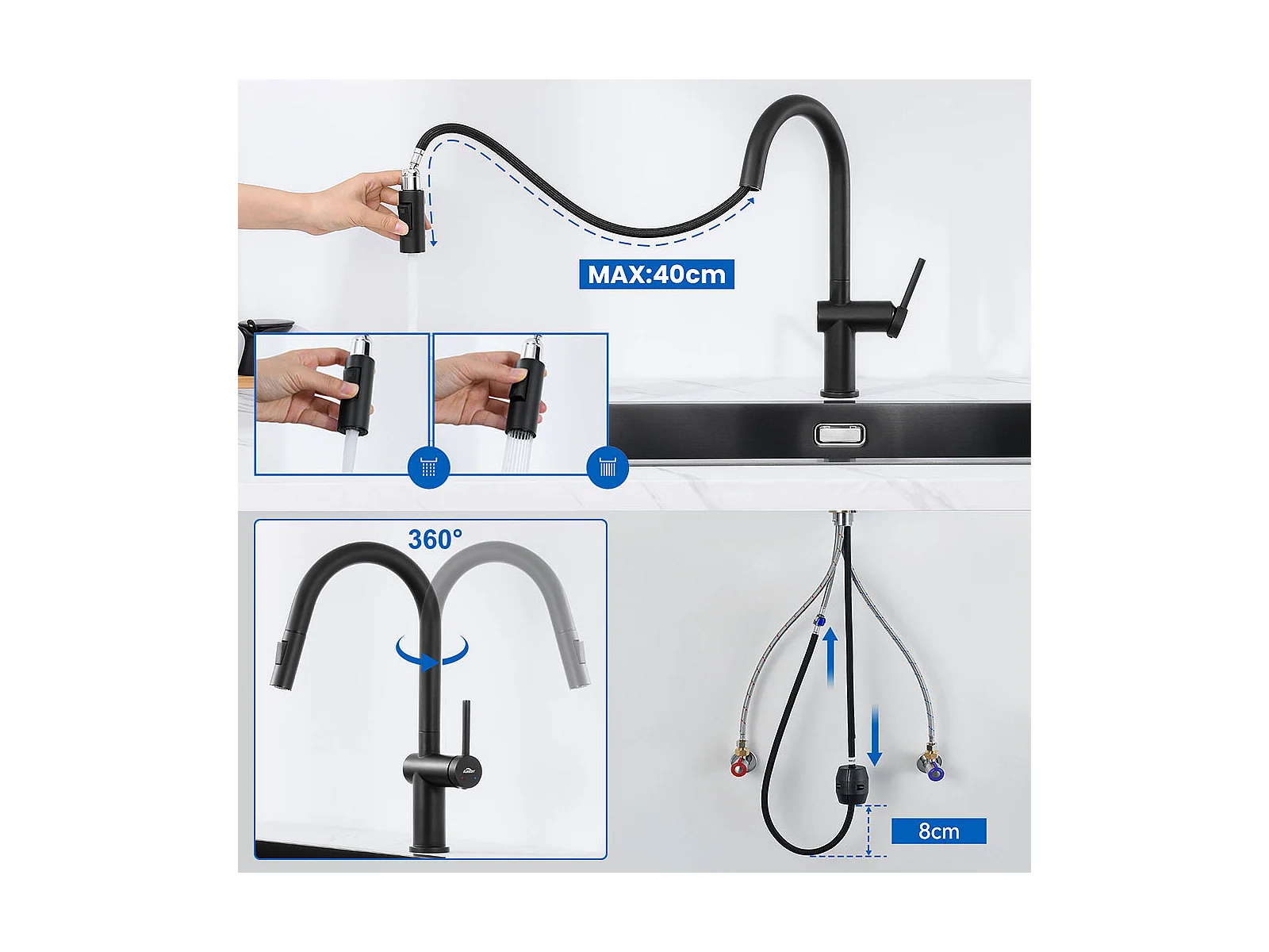 NETTLIFE Keukenkraan met uittrekbare douchekop Mengkraan Keuken draaibare kraanmond Mengkraan voor wastafel hoge druk met 2 soorten stralen, Zwart