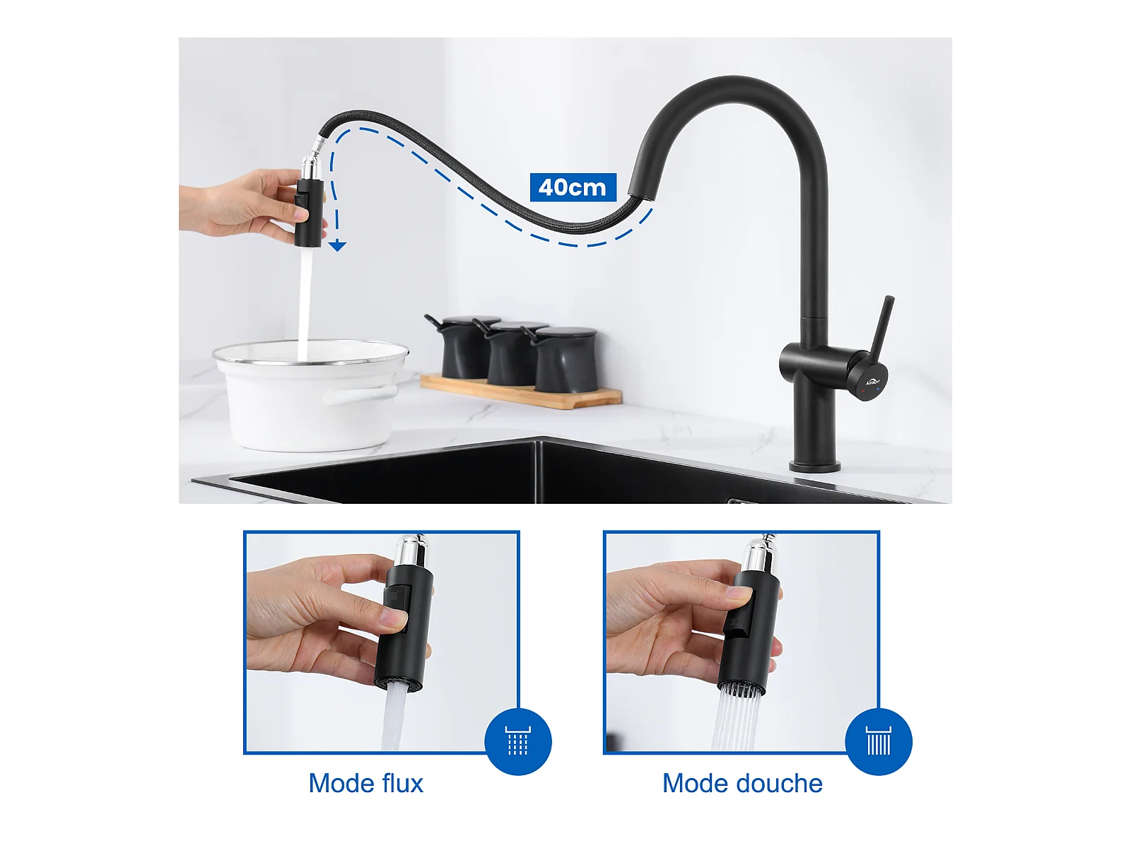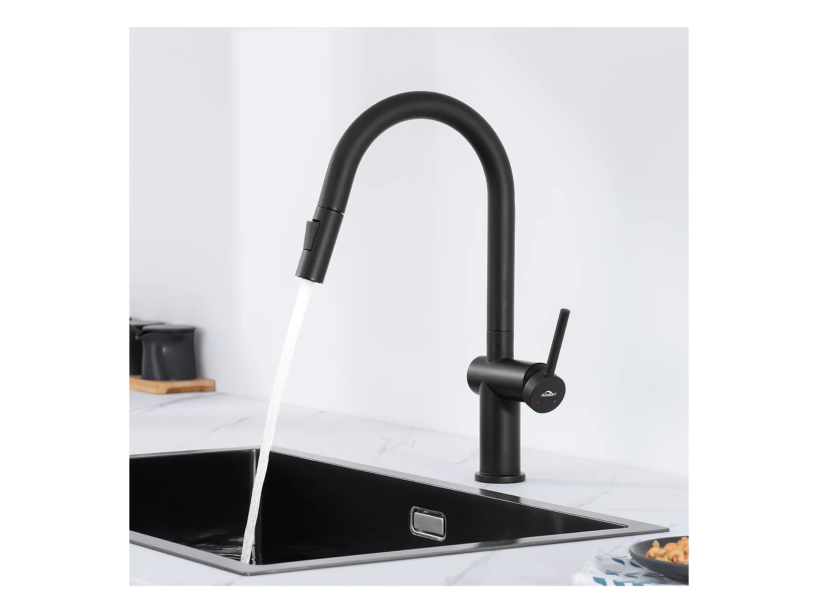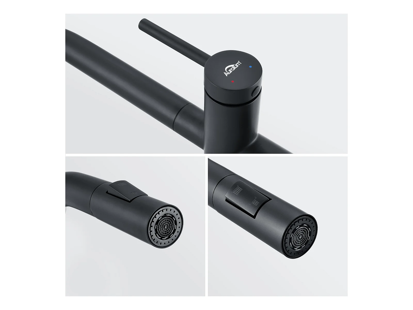 AuraLum MaxKeukenkraan keukenmengkraan met uittrekbare handdouche, keukengootsteenmengkraan 2 standen 360 graden draaibare jets Zwart, EU Model