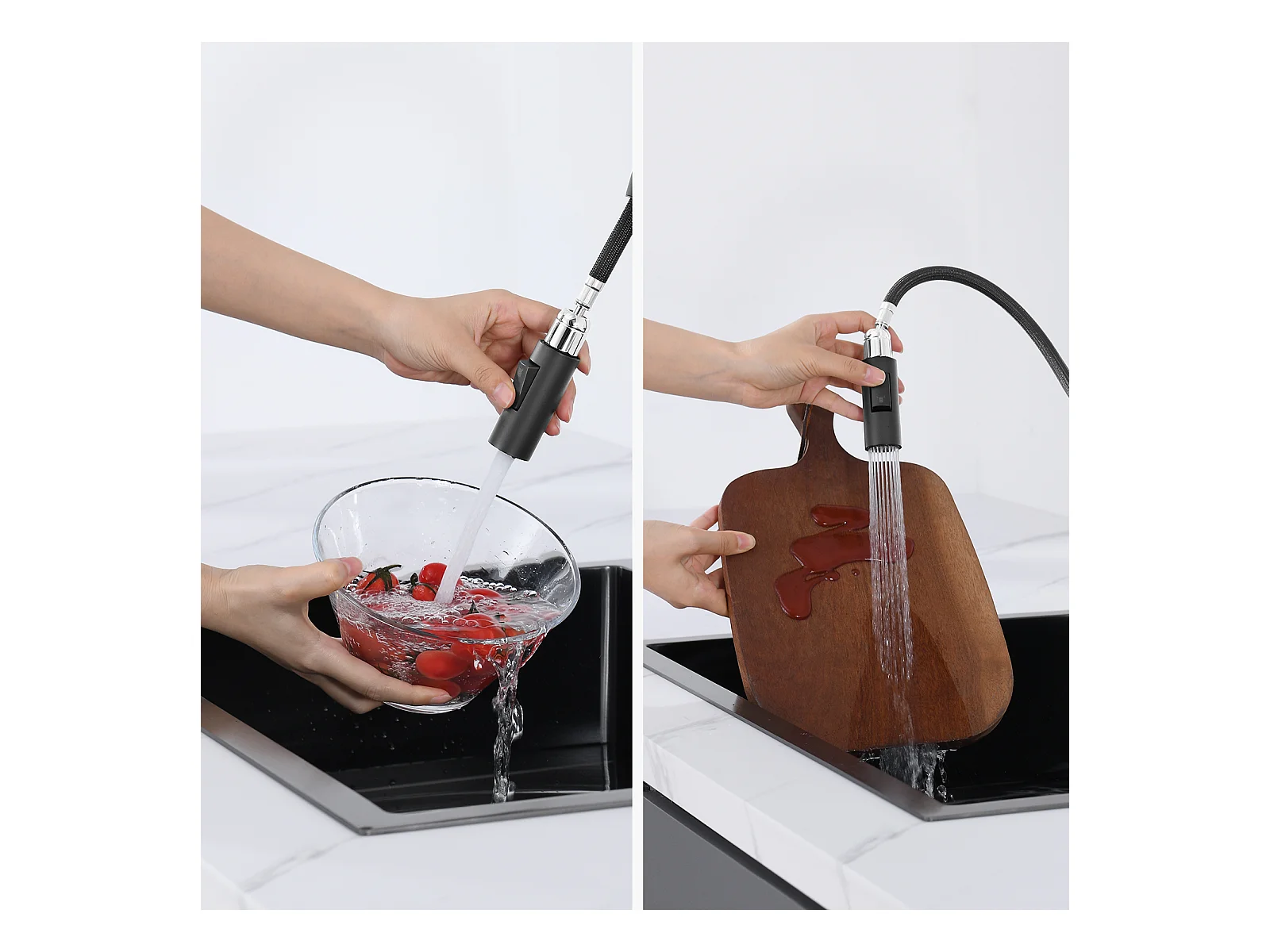 Keukenmengkraan met uittrekbare sproeikop Cecipa max - 360° draaibare roestvrijstalen kraan Zwarte sproeikraan met verwijderbare bubbler, EU-model