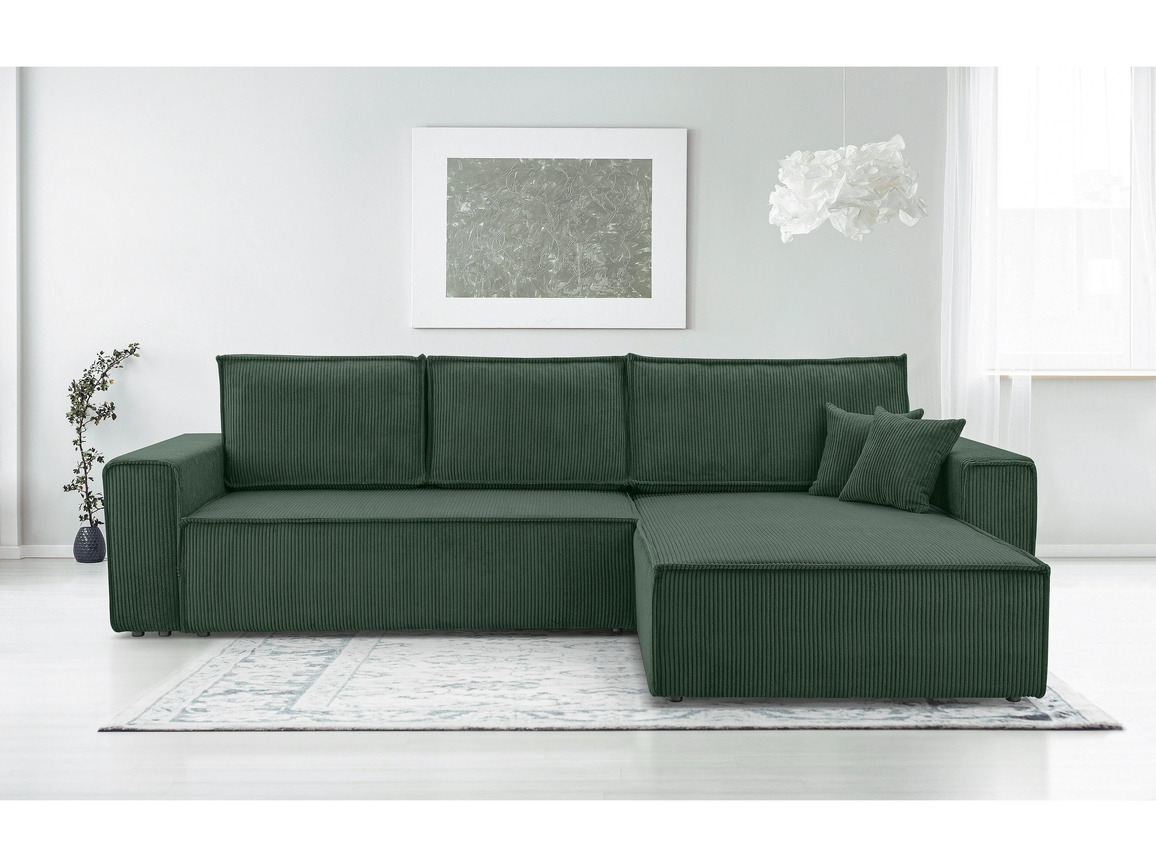 AX LIVING Arborio donkergroene hoekbank – 280 cm met slaapfunctie R